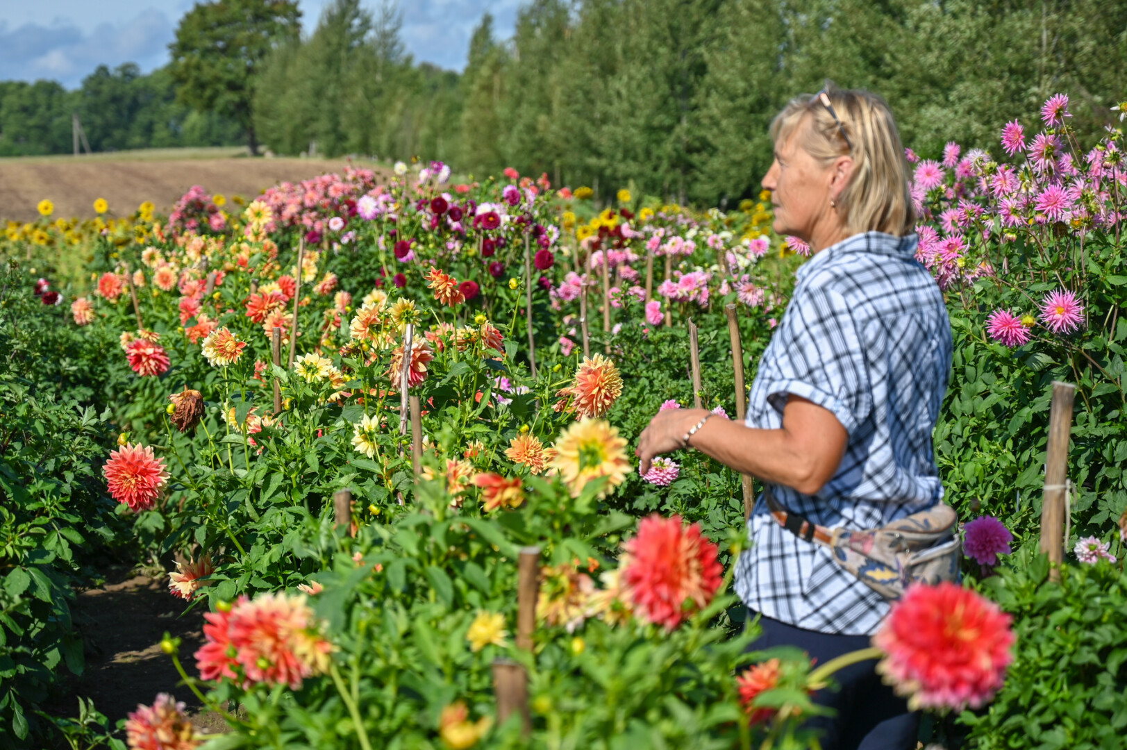 „Pažvelgi į tuos žiedus, ir pasidaro gera. Bet tam, kad būtų ir gražu, ir gera, tenka įdėti nemažai darbo. Man patinka auginti jurginus, matyti besiskleidžiančius jų žiedus. Kai sužydi visa jų jūra, į sodybą ateina šventė. Ir tęsiasi ji iki pirmųjų šalnų“, – sako Limeikių pašonėje, Tumagalyje abejingų nepaliekančios jurginų plantacijos šeimininkė Ryta Jaruševičienė.