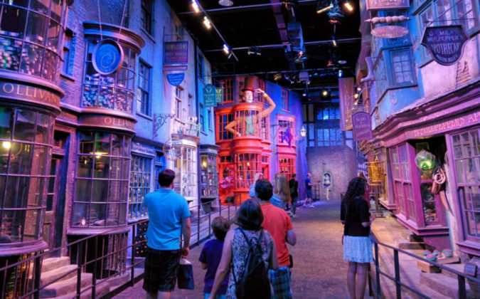 Viena vietų, ypač traukiančių šios fantastinės istorijos mėgėjus, yra ją ekranizavusios kino studijos „Warner Bros“ turas. Norint patekti į „Hario Poterio“ parką, visai nereikia jokių burtažodžių. 14 000 kvadratinių metrų užimantys kino studijos paviljonai įsikūrę 30 km atstumu į Šiaurės Vakarus nuo Londono ir į juos pakliūti gali visi norintys lankytojai. Ekskursijos, kuri trunka apie 3 valandas, metu visi atvykusieji sužinos „Hario Poterio“ filmų kūrimo paslaptis, išvys filmavimo užkulisius bei savo akimis pamatys garsiuosius veikėjų kostiumus, Didžiąją salę, Dumbldoro kabinetą ir net Skersinį skersgatvį, nusėtą stebuklingų krautuvėlių. Vienas įspūdingiausių eksponatų – Hogvartso pilies modelis, sumažintas 24 kartus.