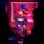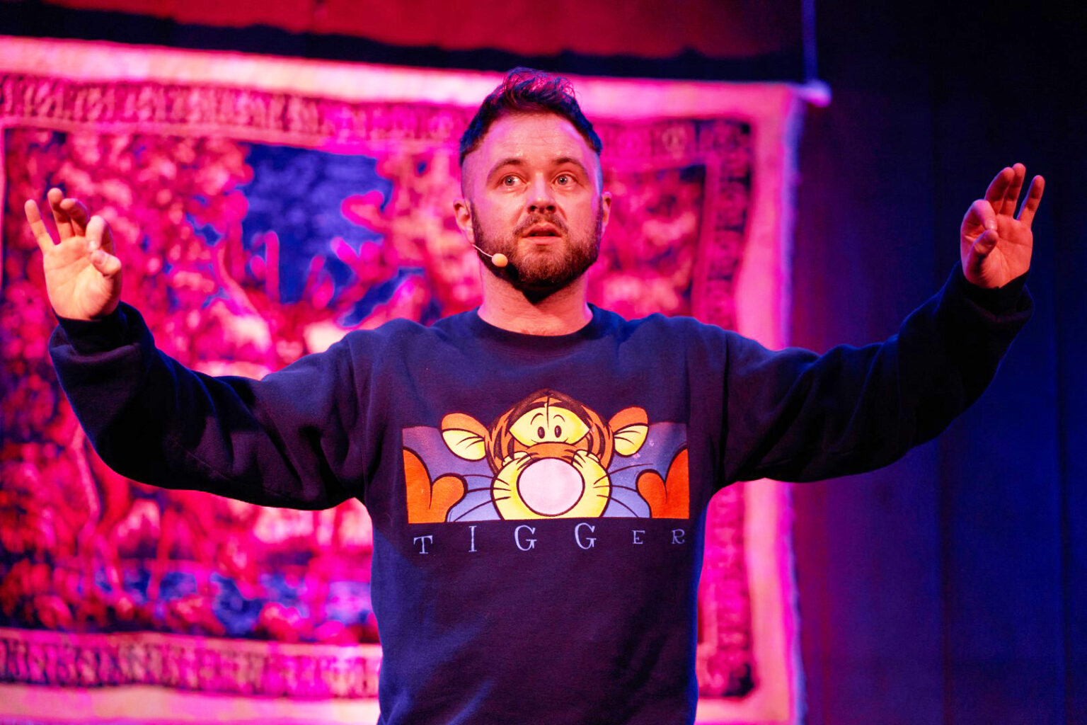 Dažniausiai pirmas dalykas, kuri žmonės daro po spektaklio, tai užlipa ant scenos nusifotografuoti prie to kilimo su briedžiukais ir man papasakoti savo istorijų.