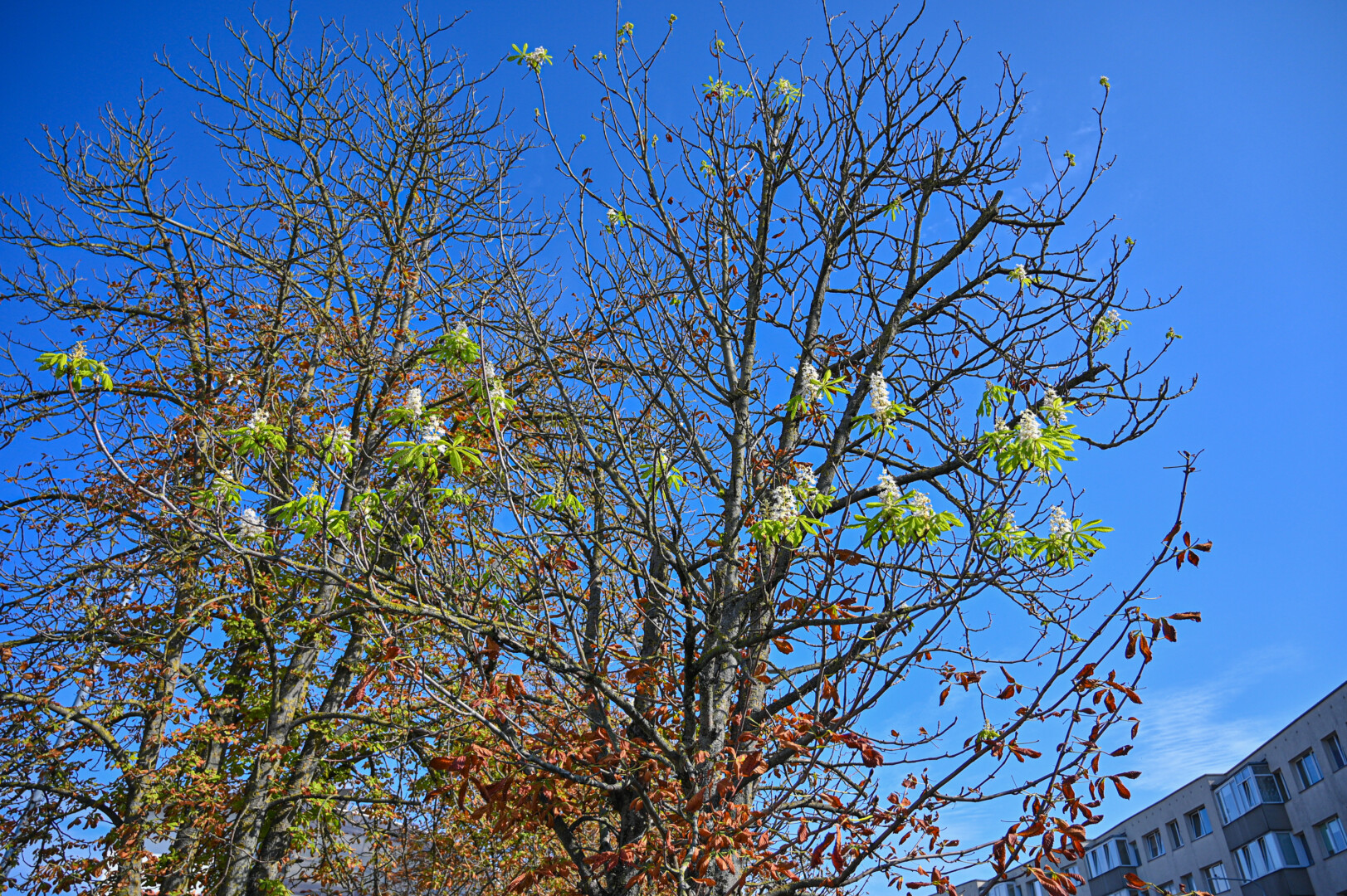 „Taip gaila žiūrėti į žiedus tarp rudų lapų. Ar nebus taip, kad pavasarį nusialinusius medžius beliks nukirsti“, – gailėjo kitoje gatvės pusėje gyvenanti ir per buto langą į kaštonus žvelgianti Aldona.