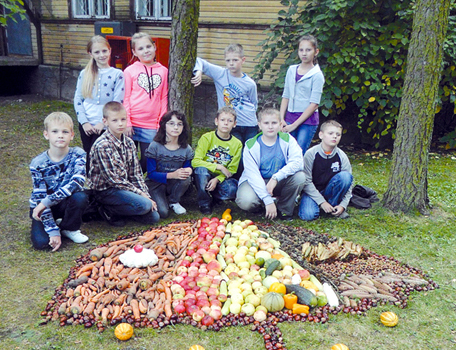 Auksinio rudens gėrybėmis džiaugėsi ir Panevėžio Skaistakalnio pagrindinės mokyklos 4b klasės mokiniai. Jie nupiešė dideles pintines, į jas pridėjo savo pieštų daržovių, vaisių ir papuošė mokyklą.