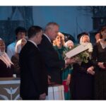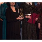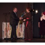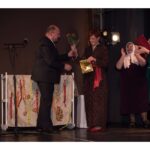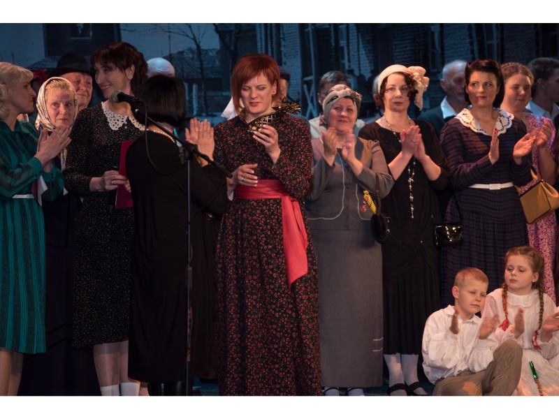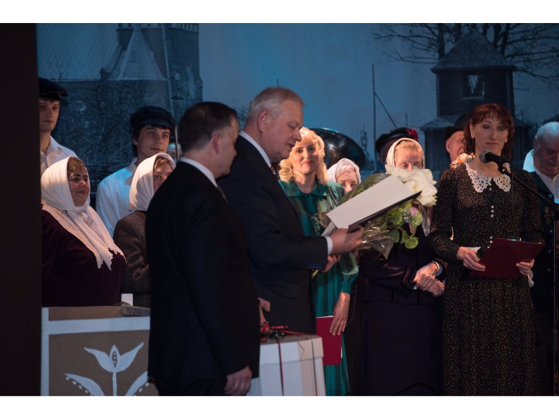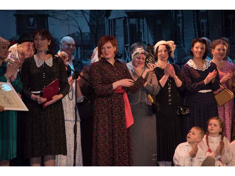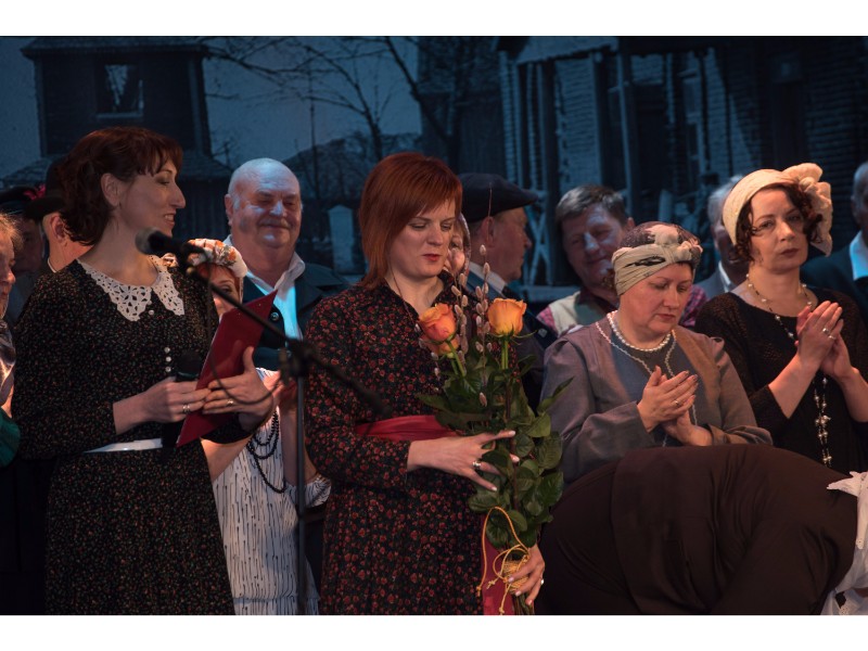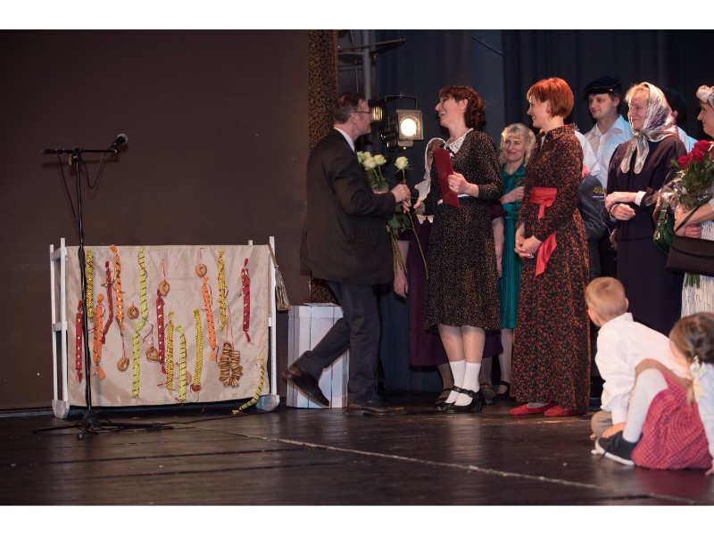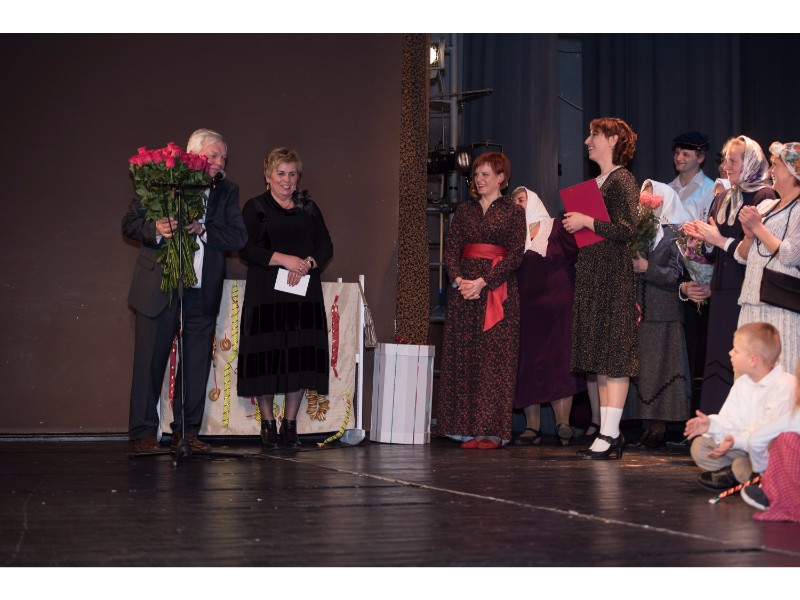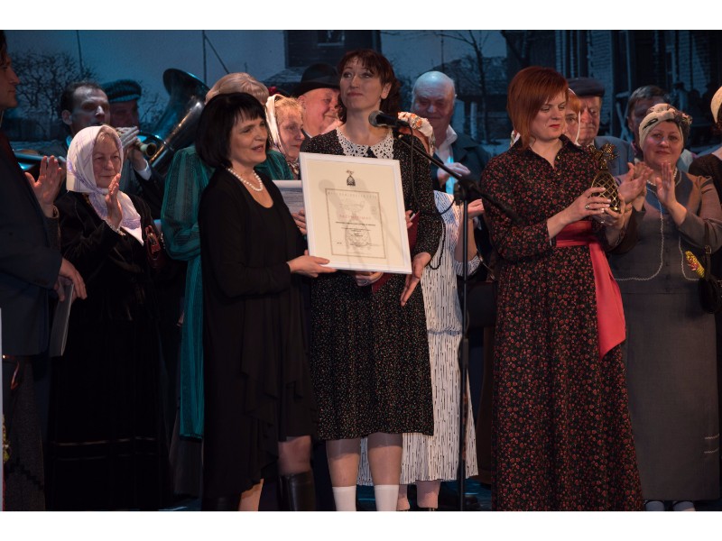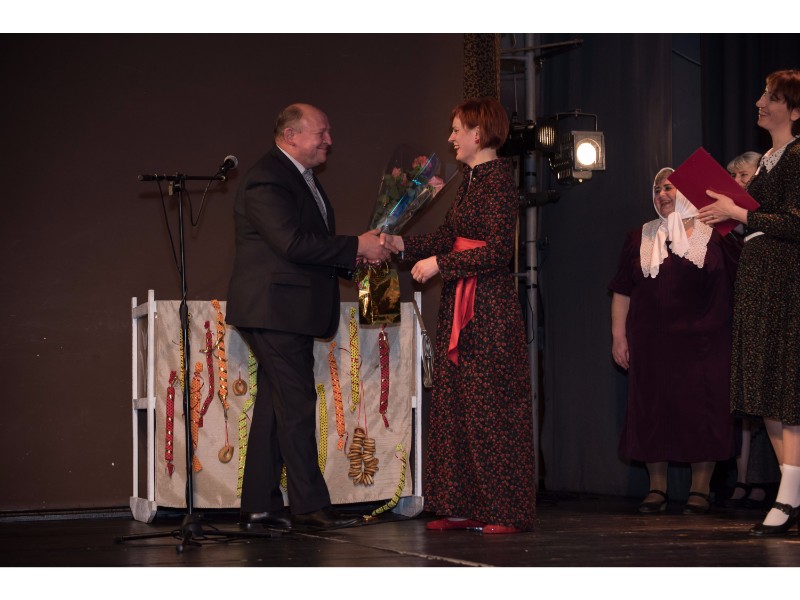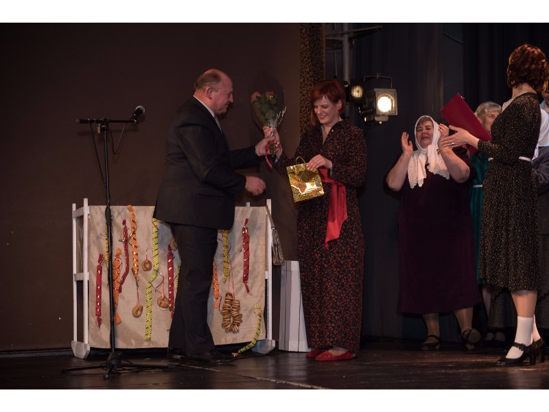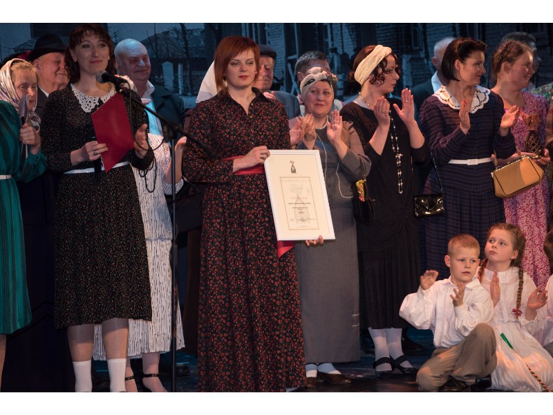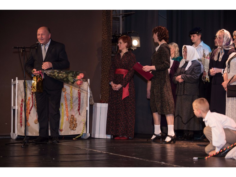 Kartu su gausybe garbingų svečių miežiškiečius sveikino ir apdovanojimą įteikė Nacionalinio kultūros centro Teatro poskyrio vadovė Irena Maciulevičienė.