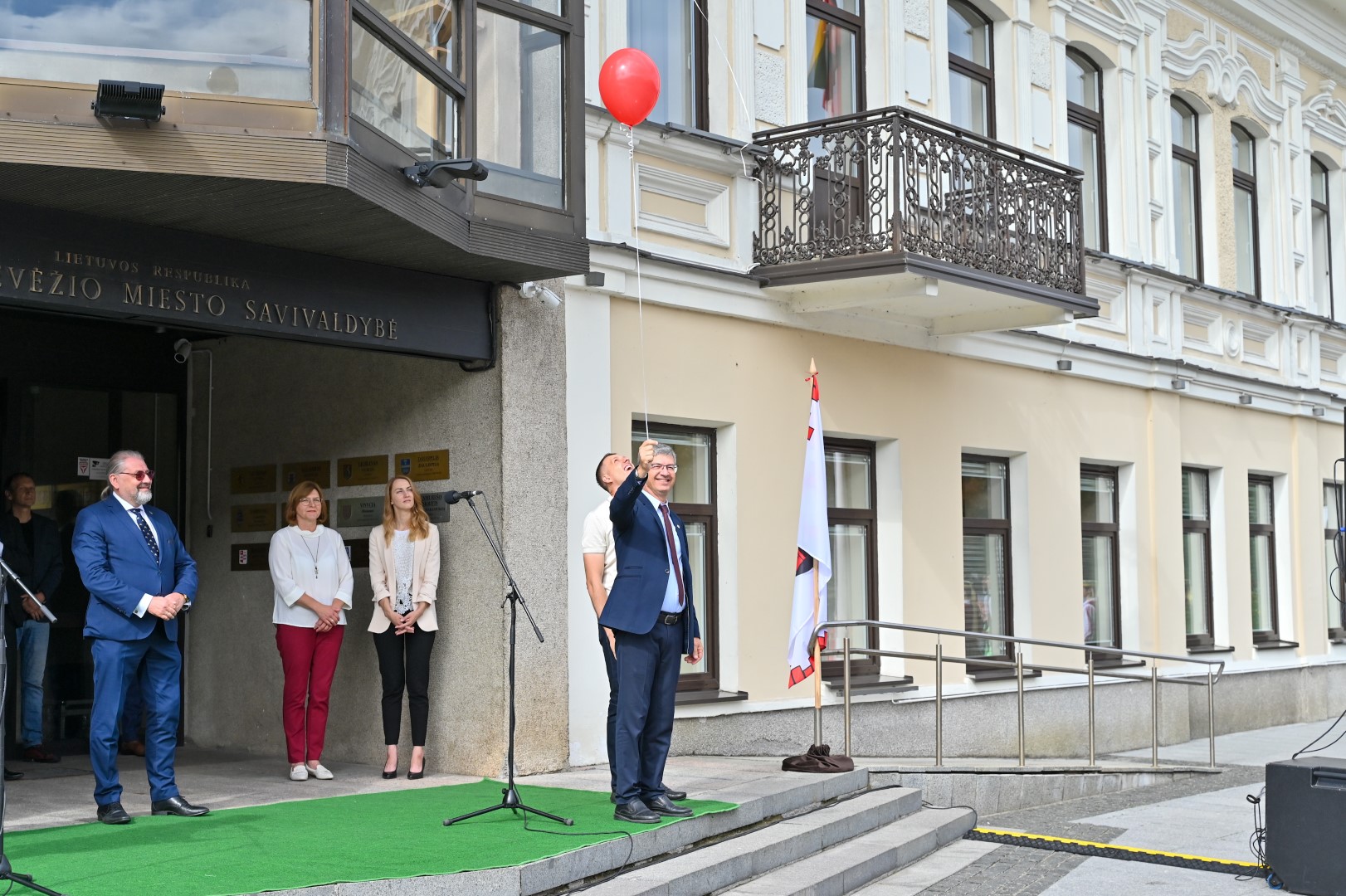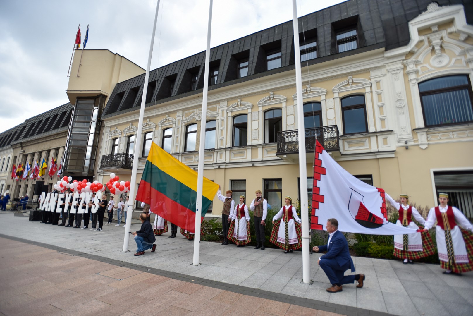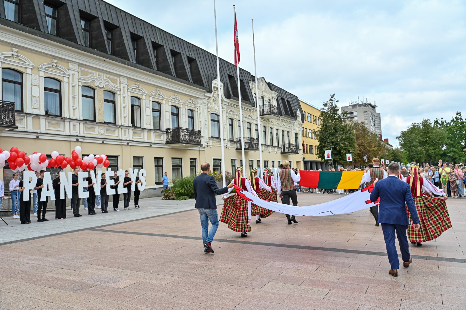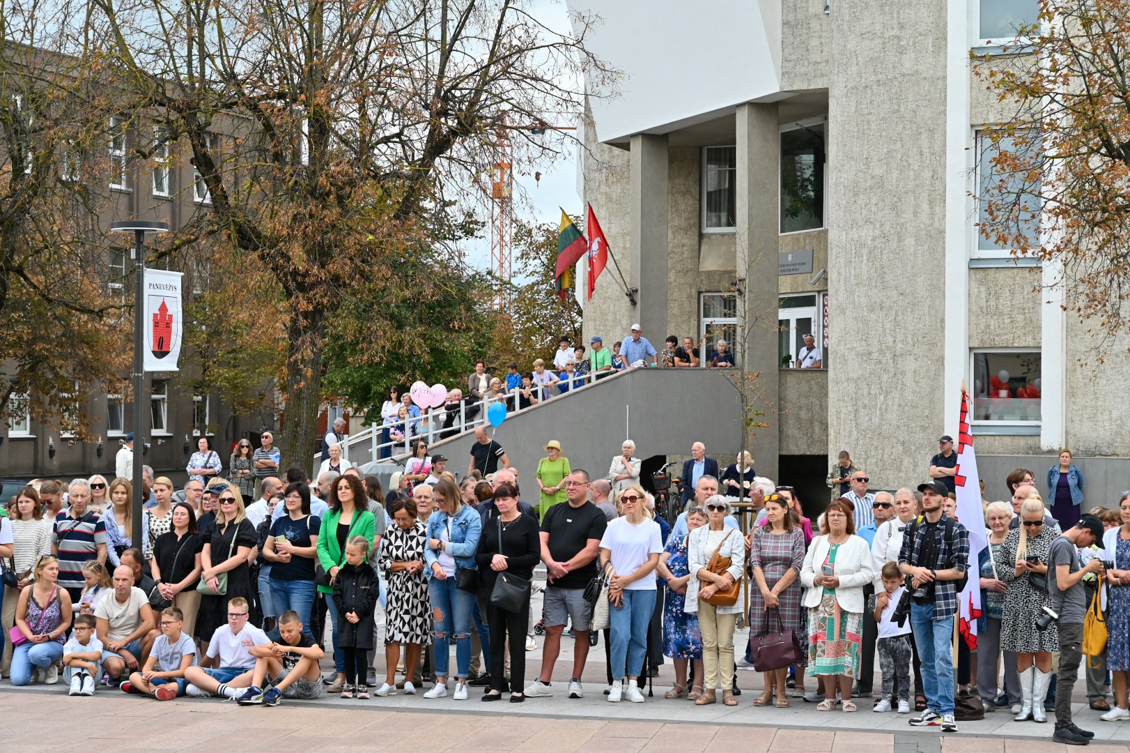 Antrą dieną tęsiantis Panevėžio gimtadienio renginiams, šeštadienio vidurdienį Laisvės aikštėje iškilmingai suplevėsavo vėliava.