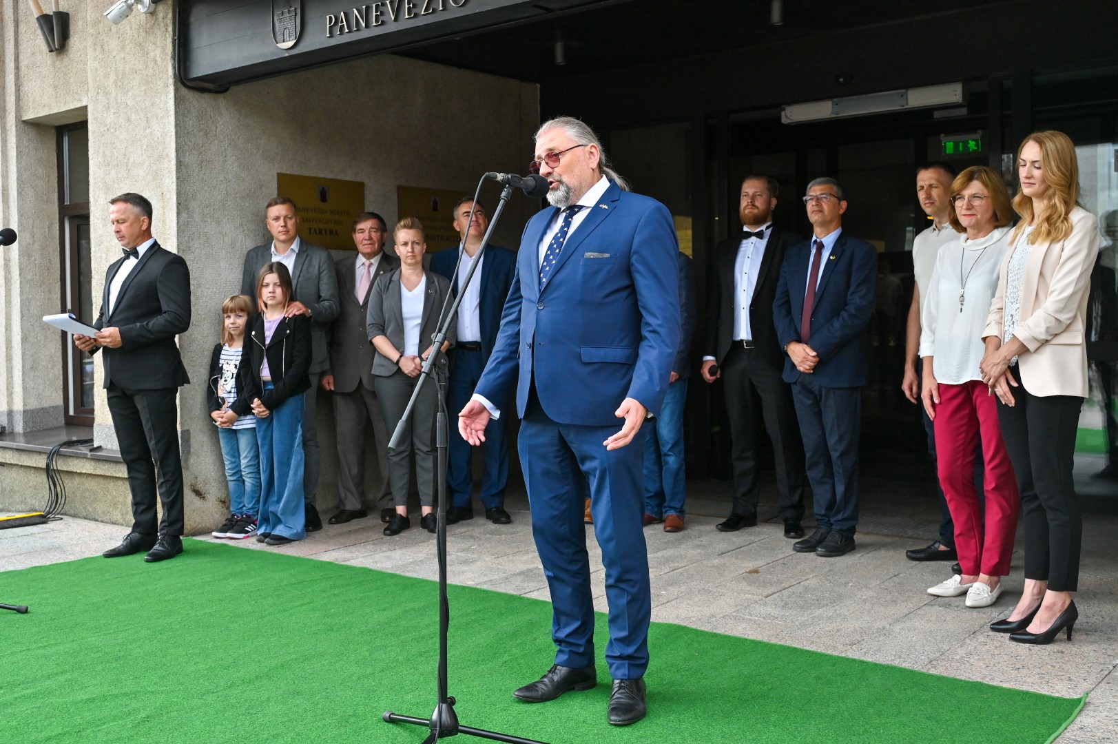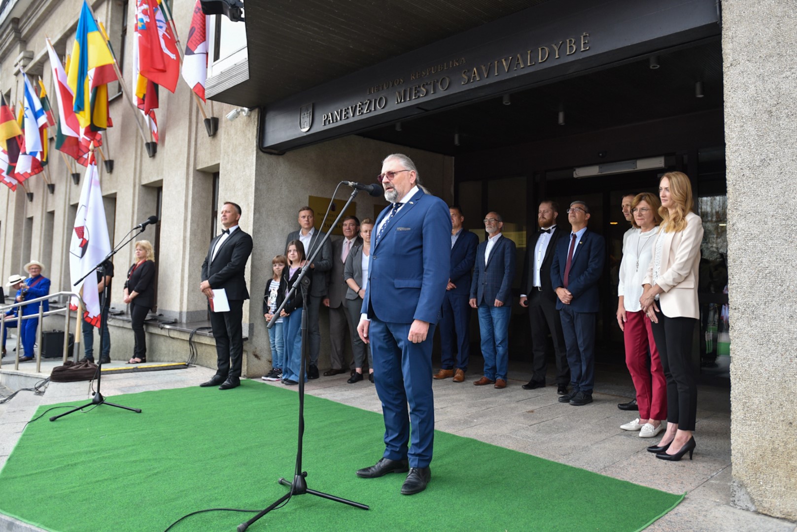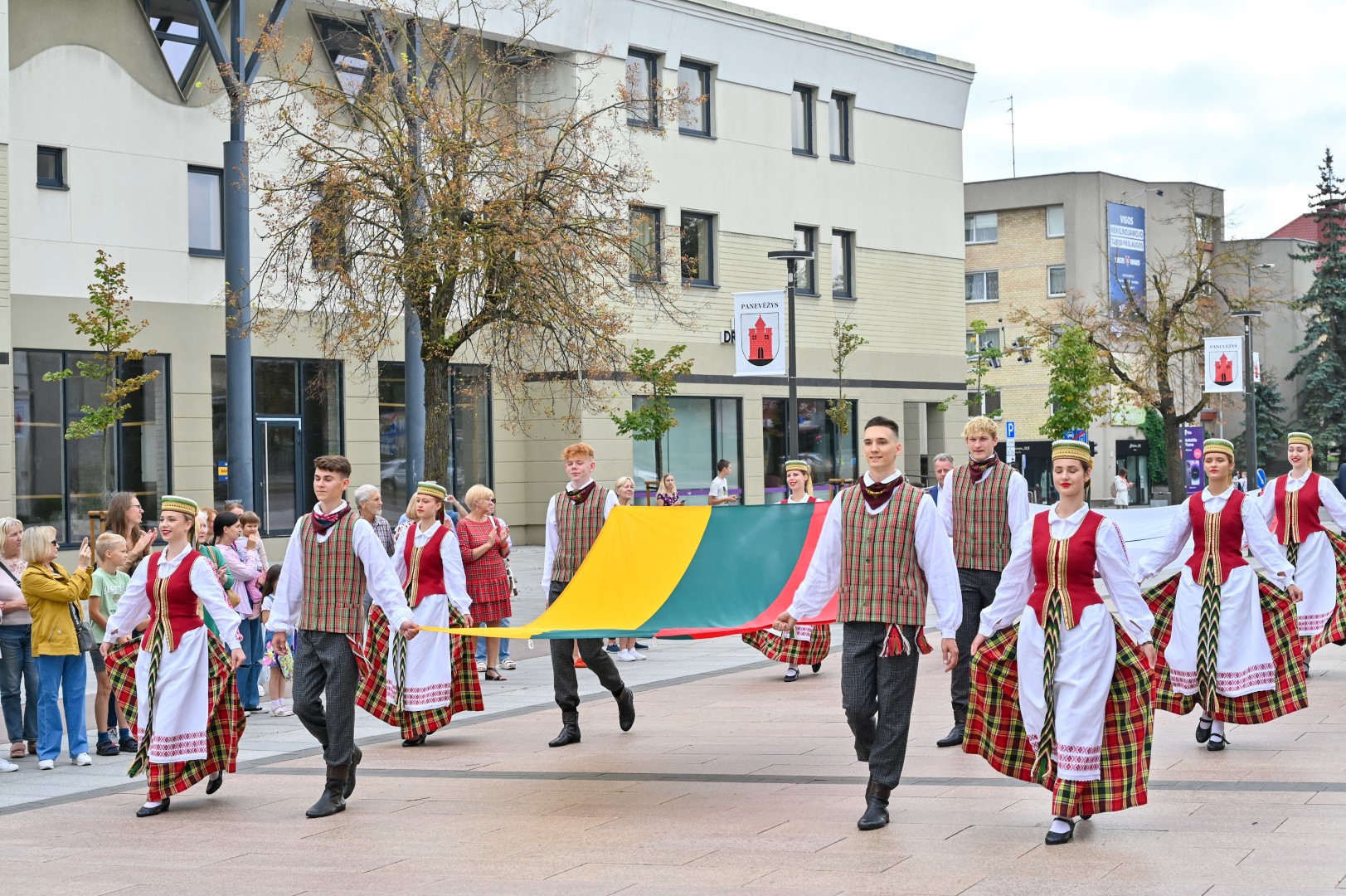 Antrą dieną tęsiantis Panevėžio gimtadienio renginiams, šeštadienio vidurdienį Laisvės aikštėje iškilmingai suplevėsavo vėliava.