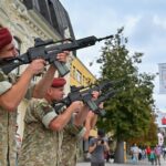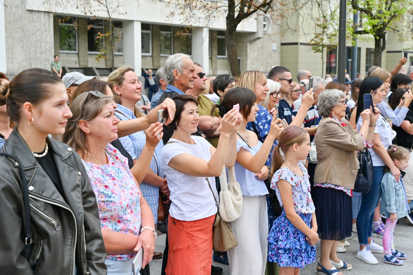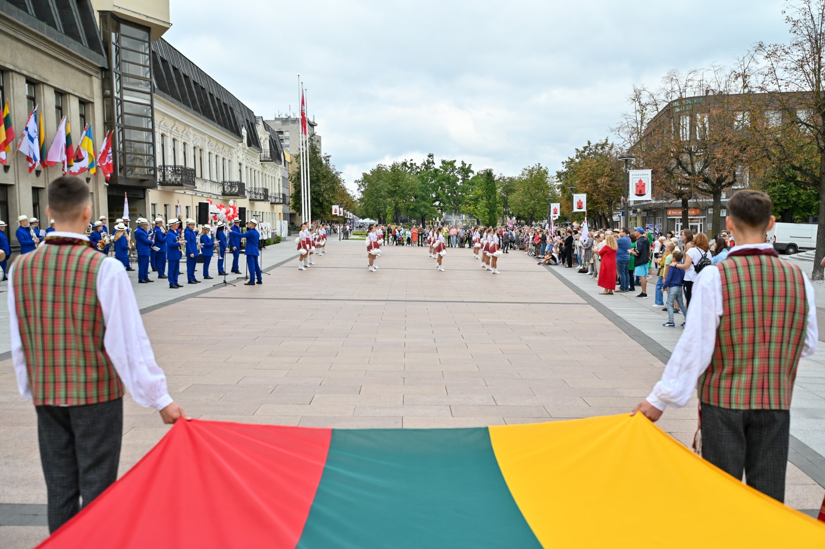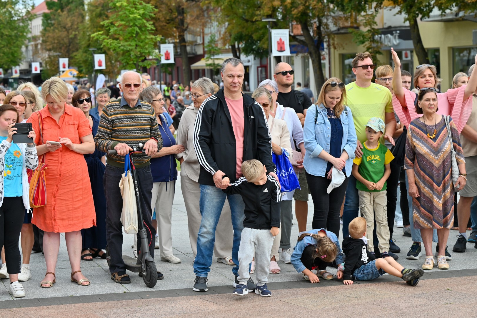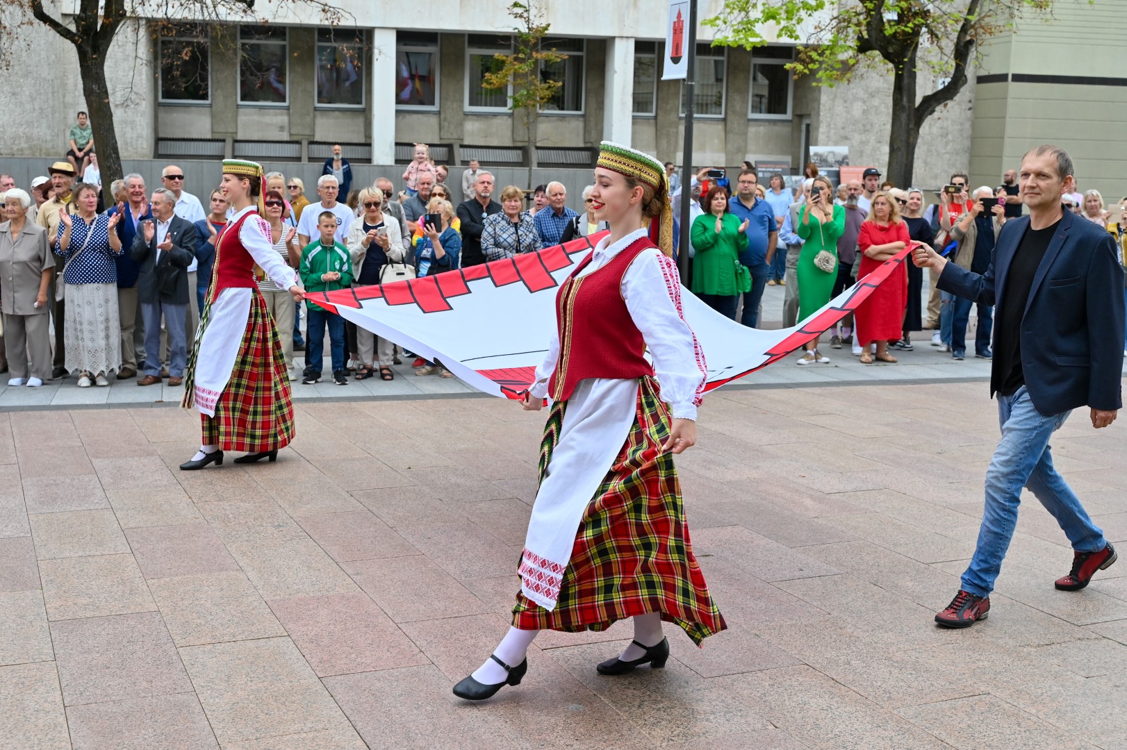 Antrą dieną tęsiantis Panevėžio gimtadienio renginiams, šeštadienio vidurdienį Laisvės aikštėje iškilmingai suplevėsavo vėliava.