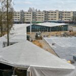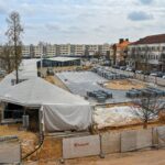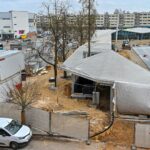 Palapinių miestelis , ną neįsipaišo į centrinę miesto dalį. Atrodo kaip kaimo turgaus aikštė.
