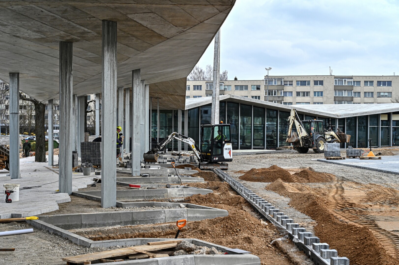 Kaip teigiama miesto Savivaldybės pranešime, šiuo metu atliekami vidaus apdailos darbai, tvarkoma perono ir keleivių įlaipinimo aikštelės, pagrindinėje salėje pradedami sienų ir lubų montavimo darbai.