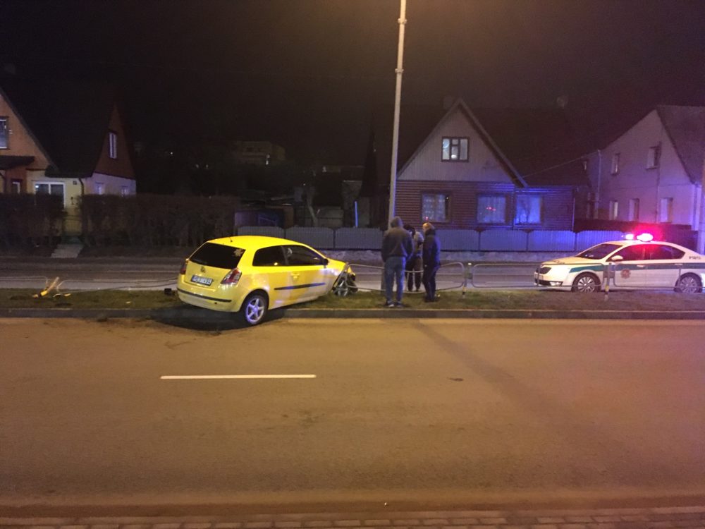 Šeštadienio vakarą „Fiat” automobilio vairuotojas kelionę baigė netikėtai rėžęsis į metalinius kelio atitvarus.
