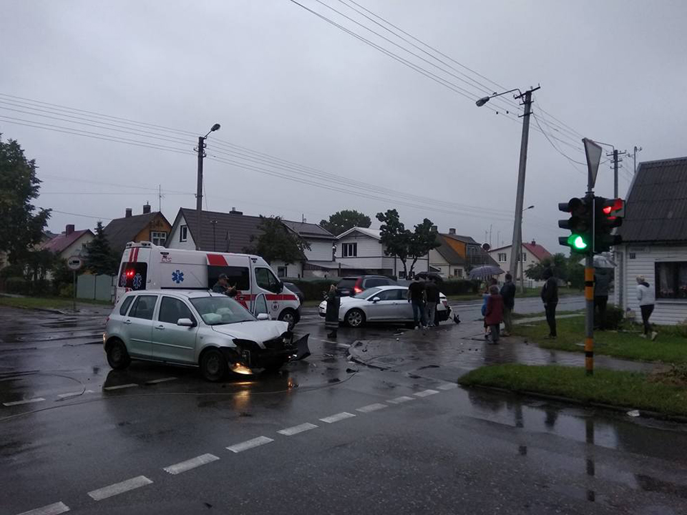 Sankryžoje vienam automobiliui išlėkus į sankryžą degant raudonam šviesoforo signalui, nukentėjo degant žaliam signalui važiavusi vairuotoja.