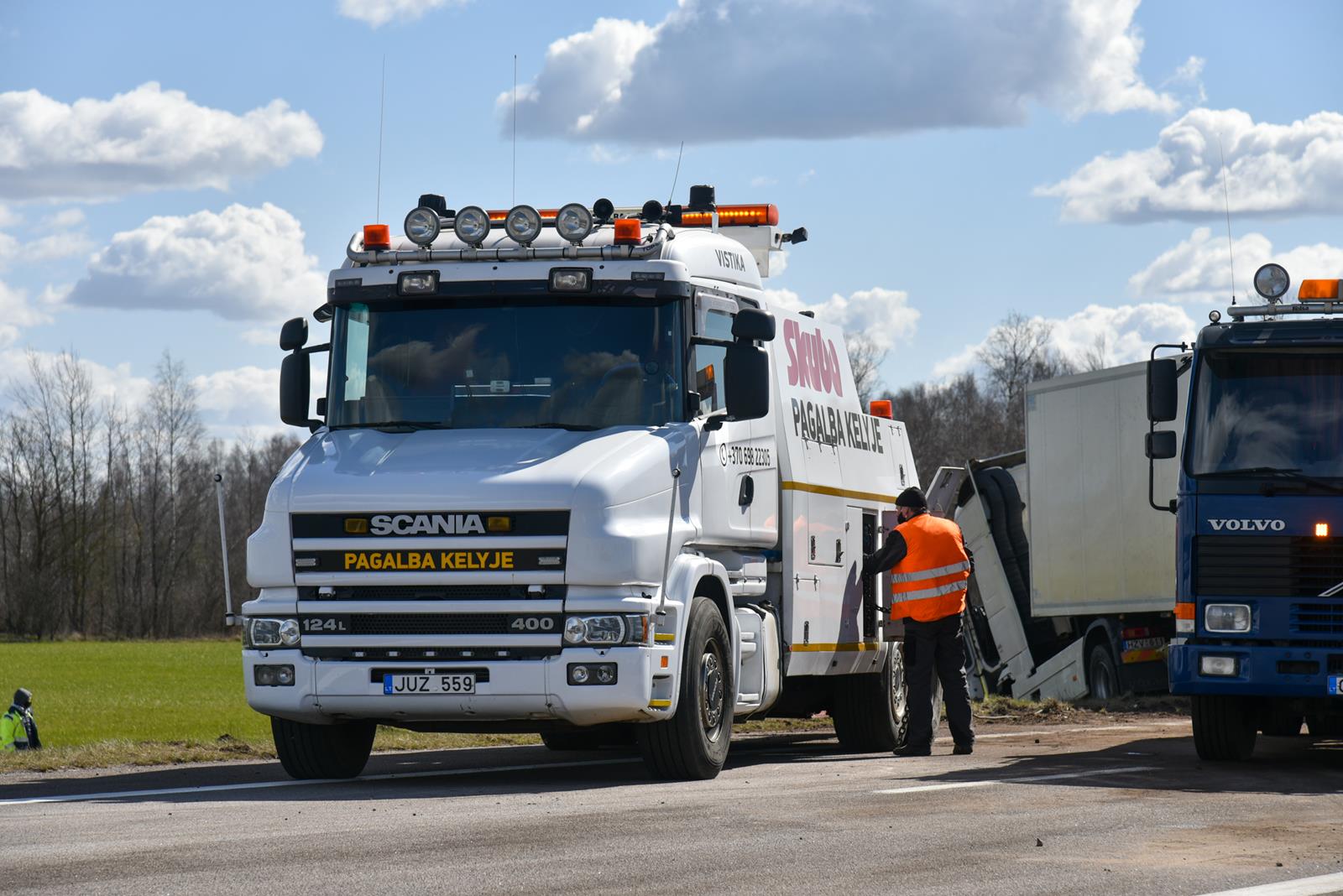 Apie 13 val. eismas A2 kelyje dar nebuvo atnaujintas, nes krovinys perkraunamas rankomis, tik tai padarius sunkvežimį bus galima patraukti nuo važiuojamosios dalies.