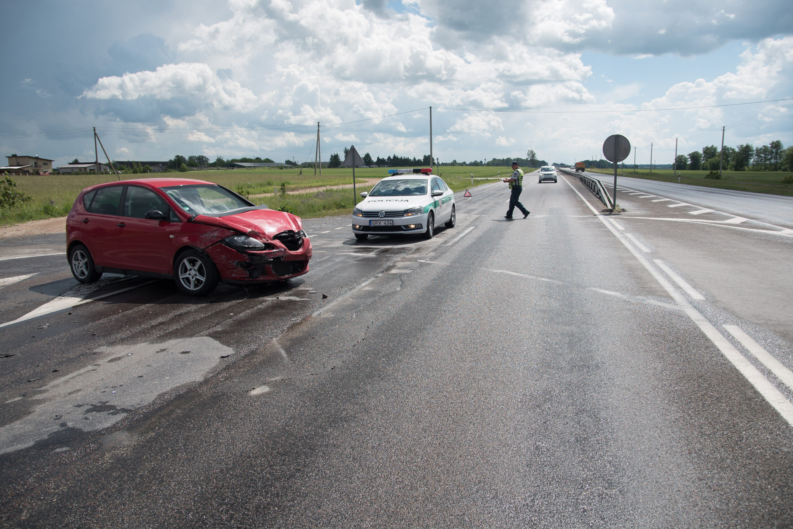 Avarija įvyko ketvirtadienį, apie 14.30 val. Magistraliniame kelyje Panevėžys-Kaunas, netoli Panevėžio, susikibo raudonas „Seat“ automobilis ir sidabrinis „Renault“.