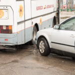 Avarija stotyje: susidūrė autobusas ir taksi automobilis
