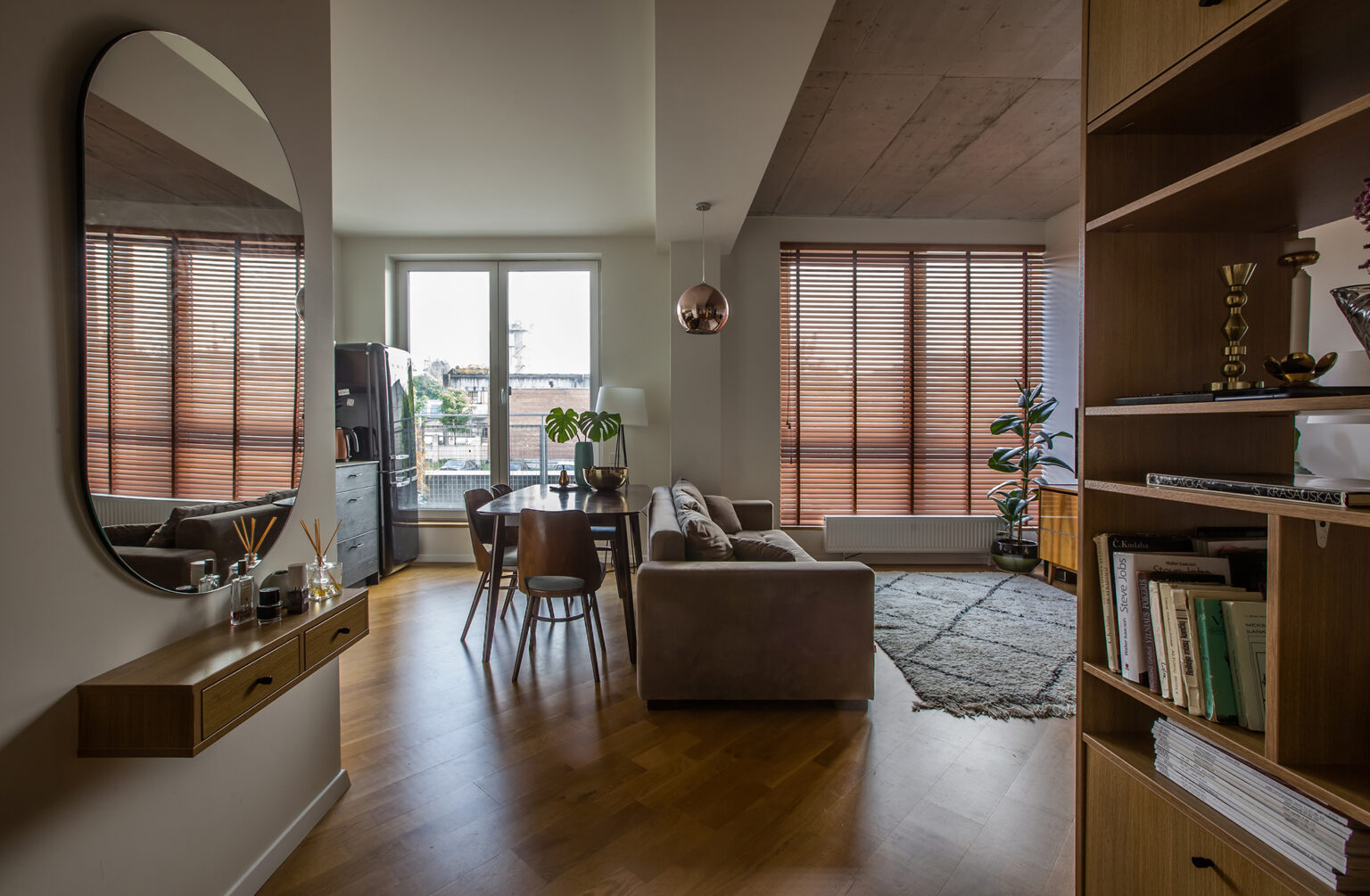 Praėjusio šimtmečio vidurio stilistika jaunai šeimai tapo nuoroda į pirmųjų savų namų jaukumą. Viktorija Vitkauskaitė dairosi, kaip lofte pavyko suderinti lengvą retro dvelksmą su šiuolaikiškomis detalėmis.