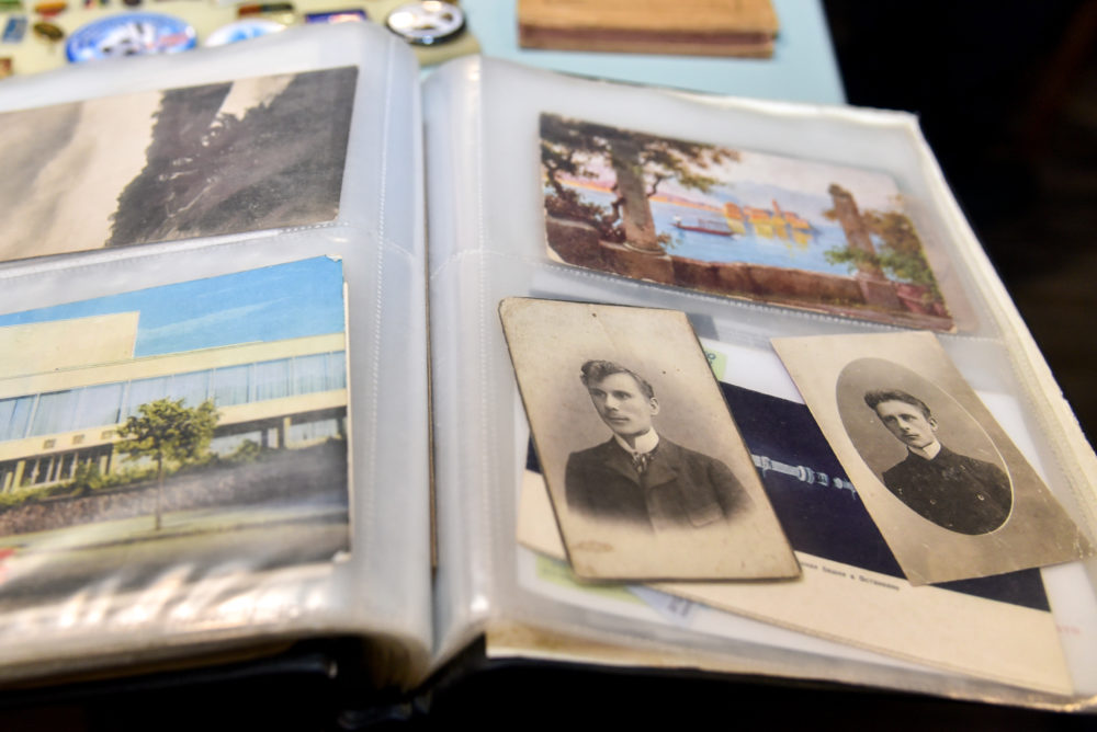 „Čia atnešiau tik krūvelę tų atvirukų, kaip ir viso kito, po dalelę. Taip esame įpratę, kai renkamės į susitikimus sekmadieniais. Atsinešame tai, ką galime išmainyti, ko patiems nebereikia“, – sako V. Kazlauskas, viešai parodantis vos kąsnelį savo brangių kolekcijų.