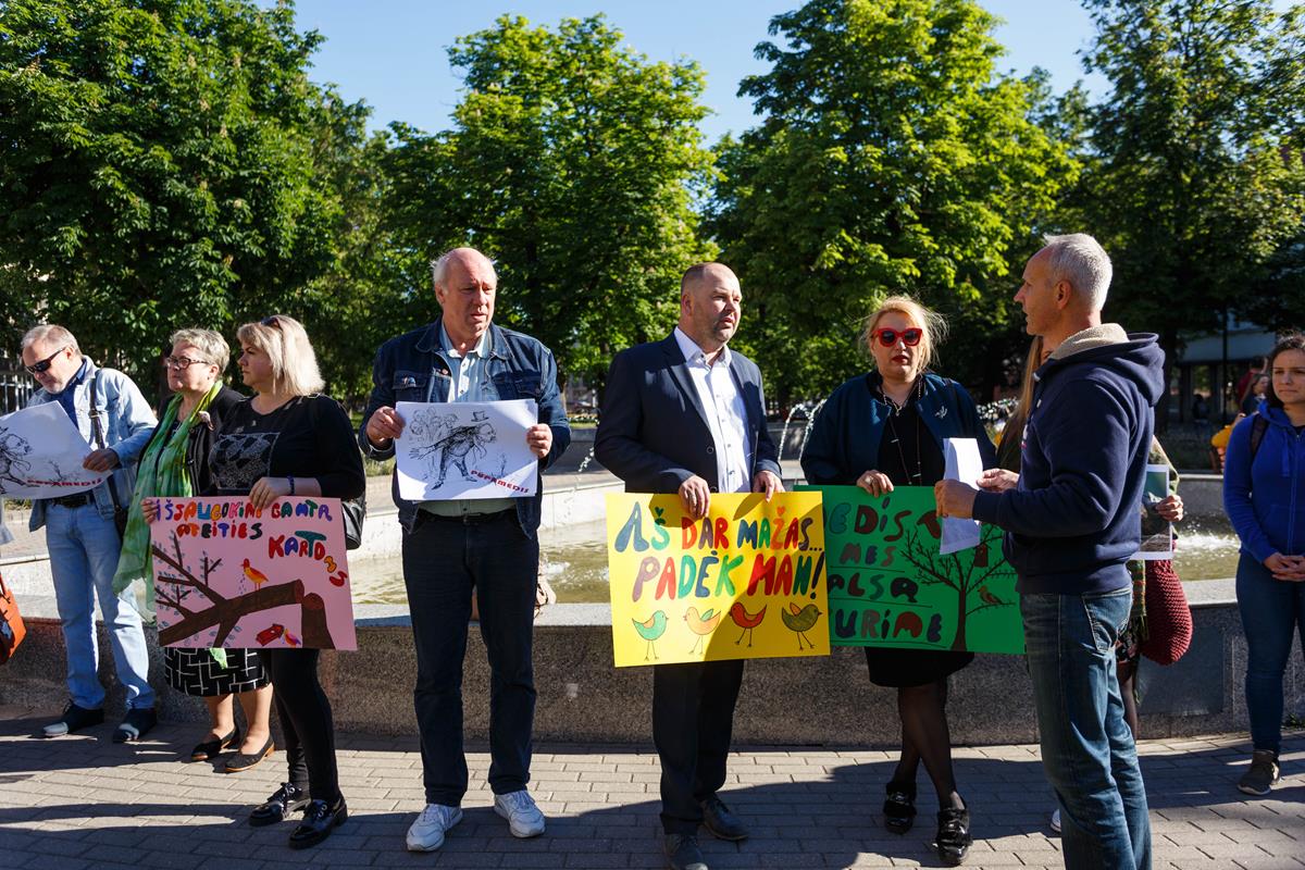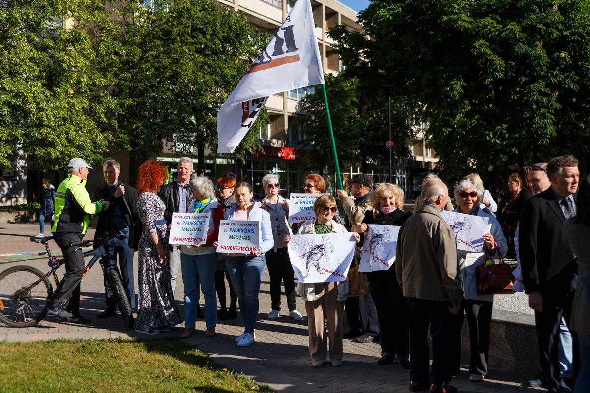 Tarybos nariai – Žaliųjų partijos atstovai Gema Umbrasienė, Mantas Leliukas, konservatorė Indiana Grigienė – ir buvo šio piketo „Medžių ir paukščių naikinimui mieste – ne“ organizatoriai.