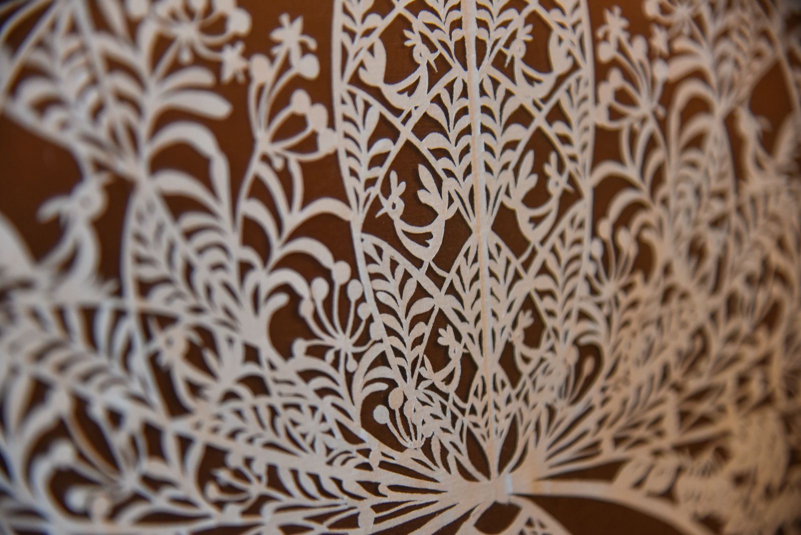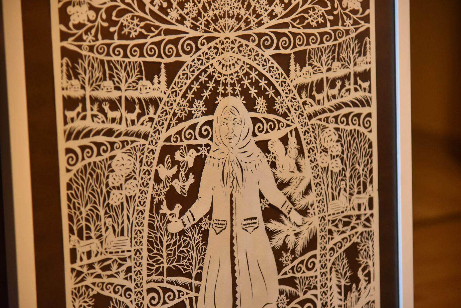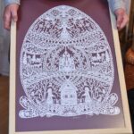 Nė vieno karpinio nėra iš gabalėlių – visas didžiulis pasakojimas sudėtas į vientisą popieriaus lapą, jį paėmus ir pakėlus dviem pirštais pasiskleidžia paslaptingas ažūras.