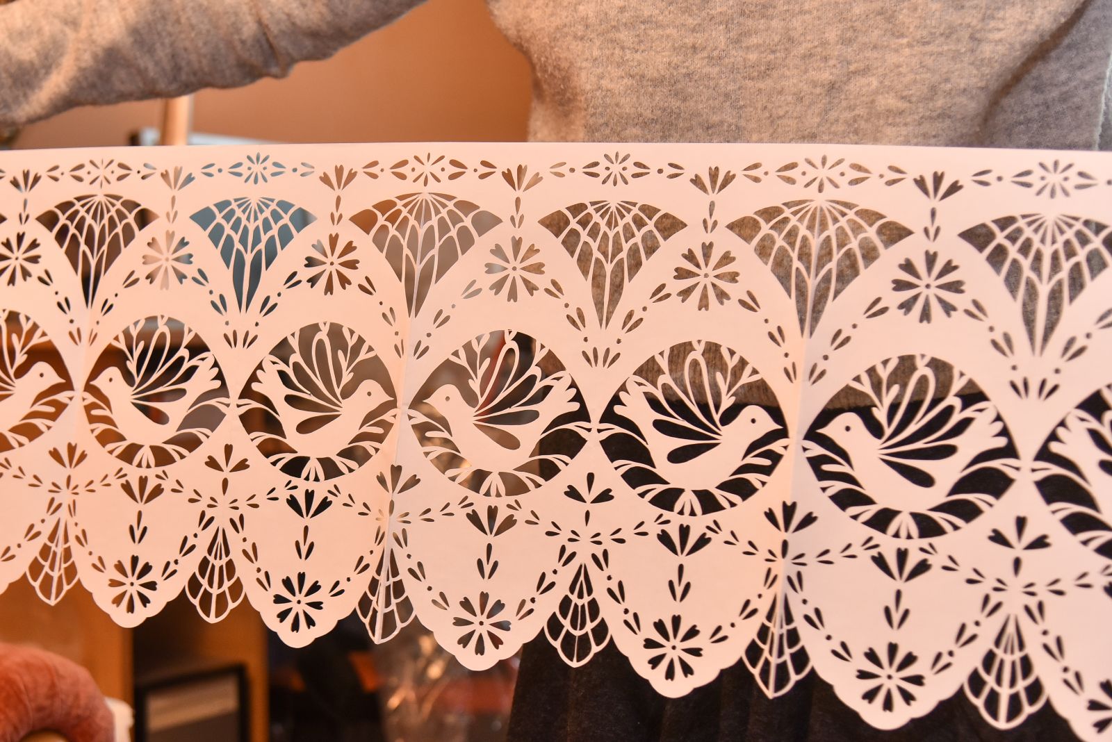 „Nejauku buvo. Tuščios, plikos sienos, jokių įdomesnių akcentų. Svarstant, kaip čia pasipuošti, ir kilo mintis, kad puikiai tiktų karpiniai“, – prisimena kūrėja.