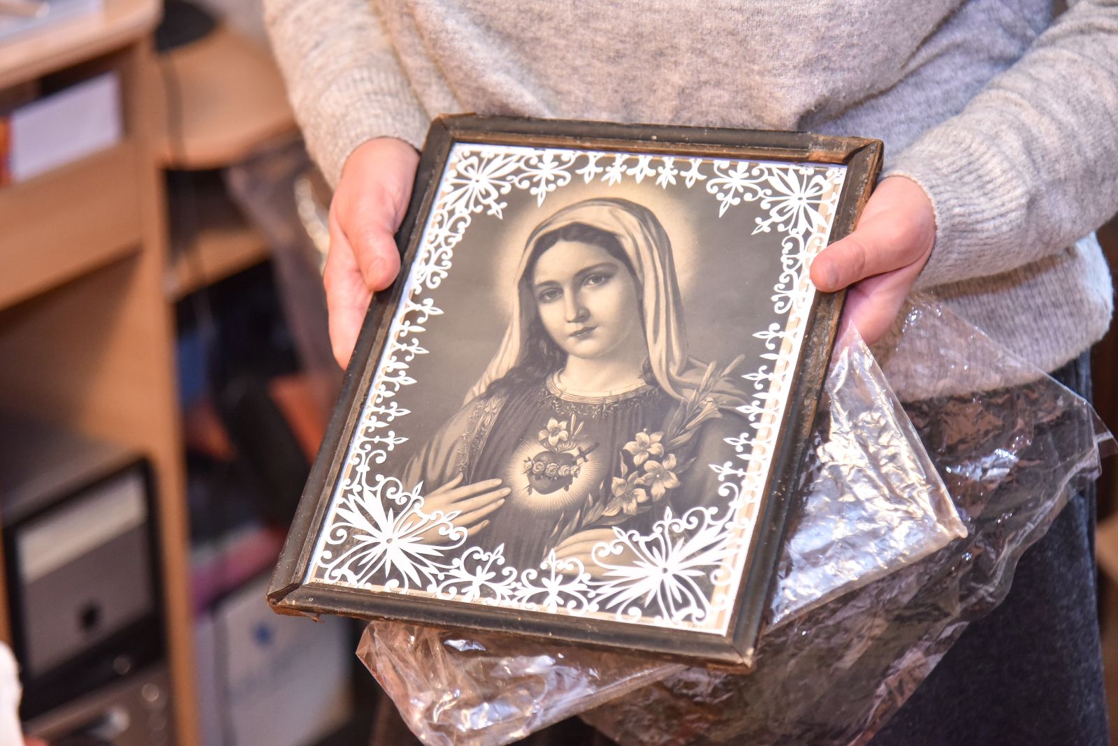 Dukra Virginija iškarpė ir savo mamai skirtą paveikslą. P. Židonio nuotr.