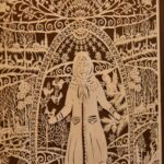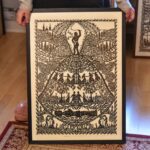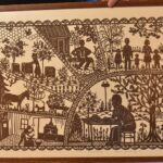 Yra tautodailininkės iškarpytame paveiksle ir nelabasis su botagu, ir raganos, ir įvesdinimų vaizdai, ir dar daug visko sudėta palyginti nedideliame popieriaus lakšte.