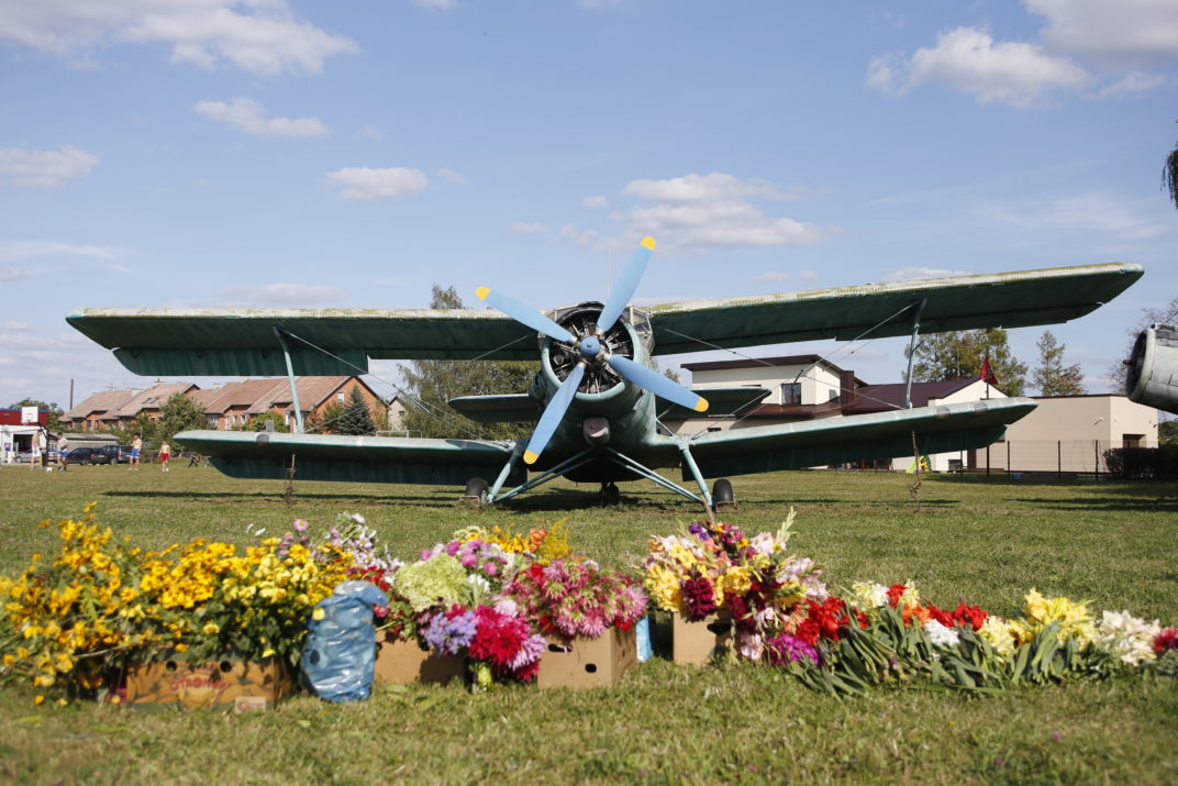 Į Stetiškių aerodromą miesto pakraštyje žmonės vežė glėbius gėlių.