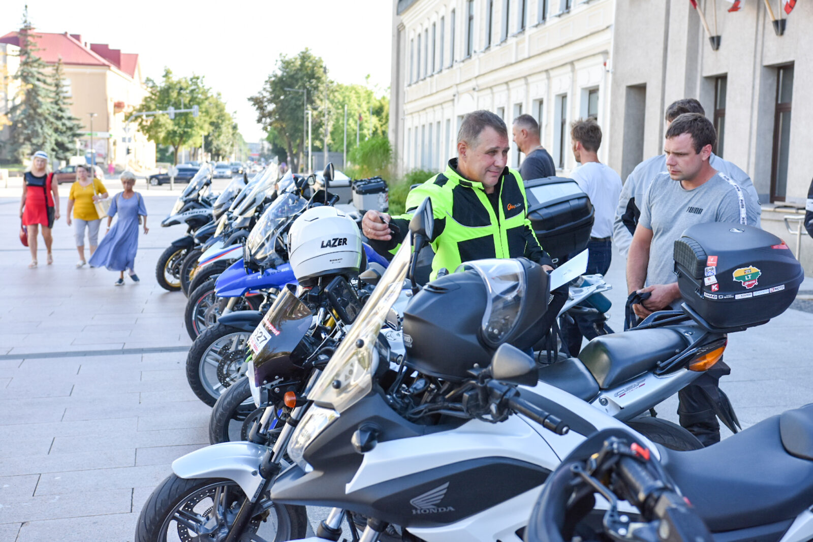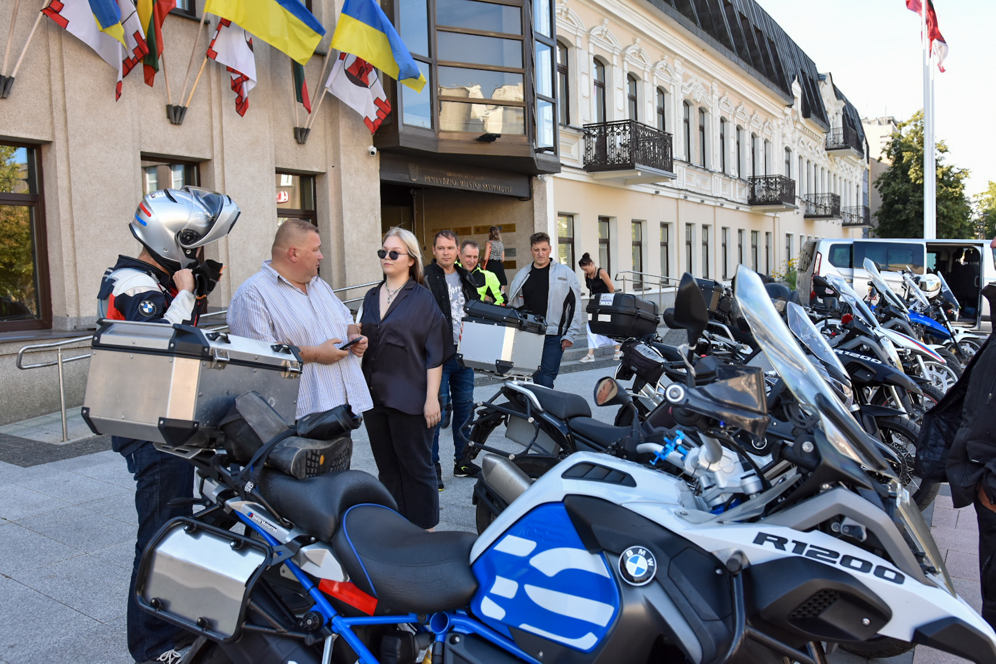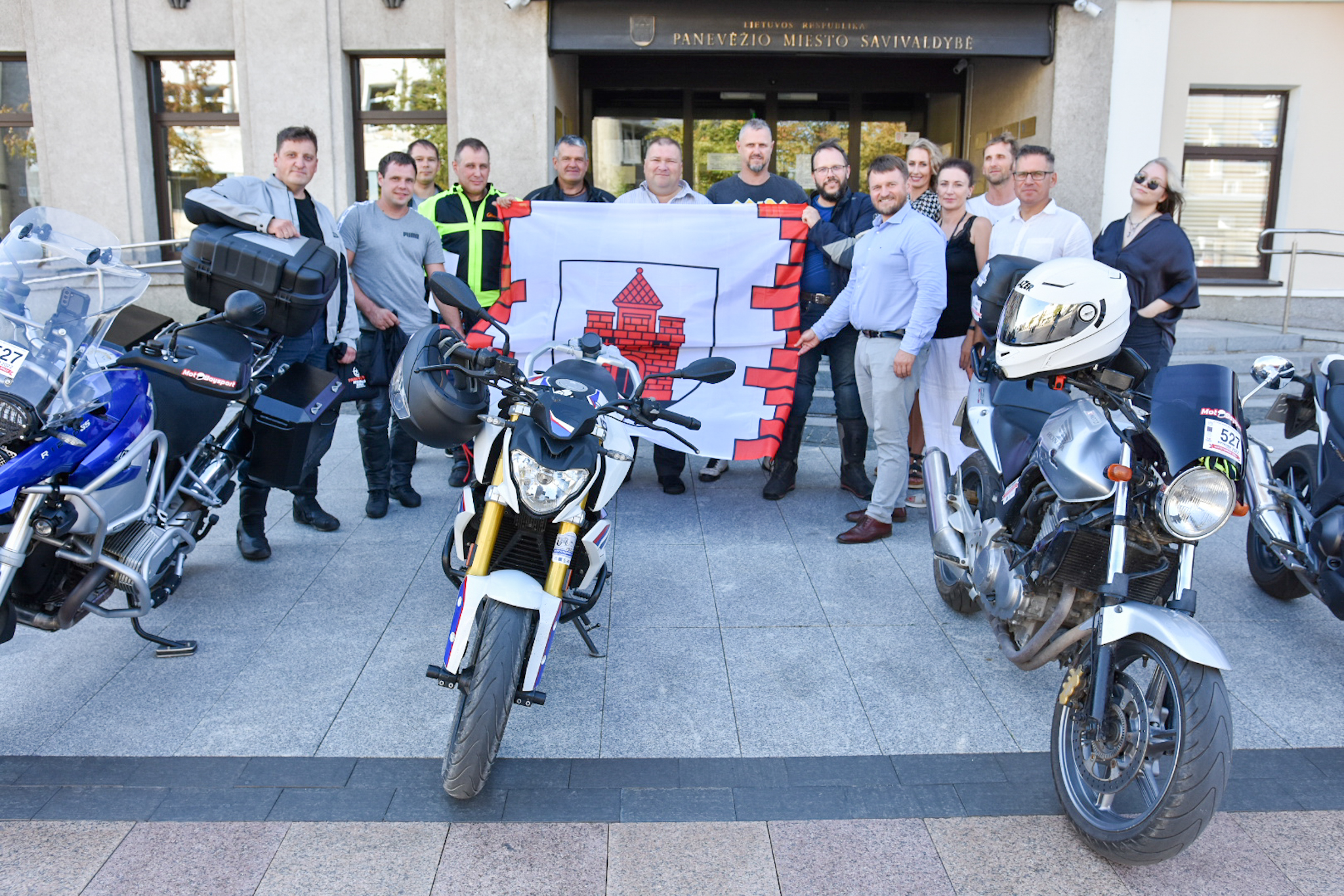 Šiandien prie Panevėžio miesto savivaldybės išlydėti taip pat „Mototurizmo ralis 2022 po Lietuvą”, skirto Baltijos keliui paminėti, žygio dalyviai.