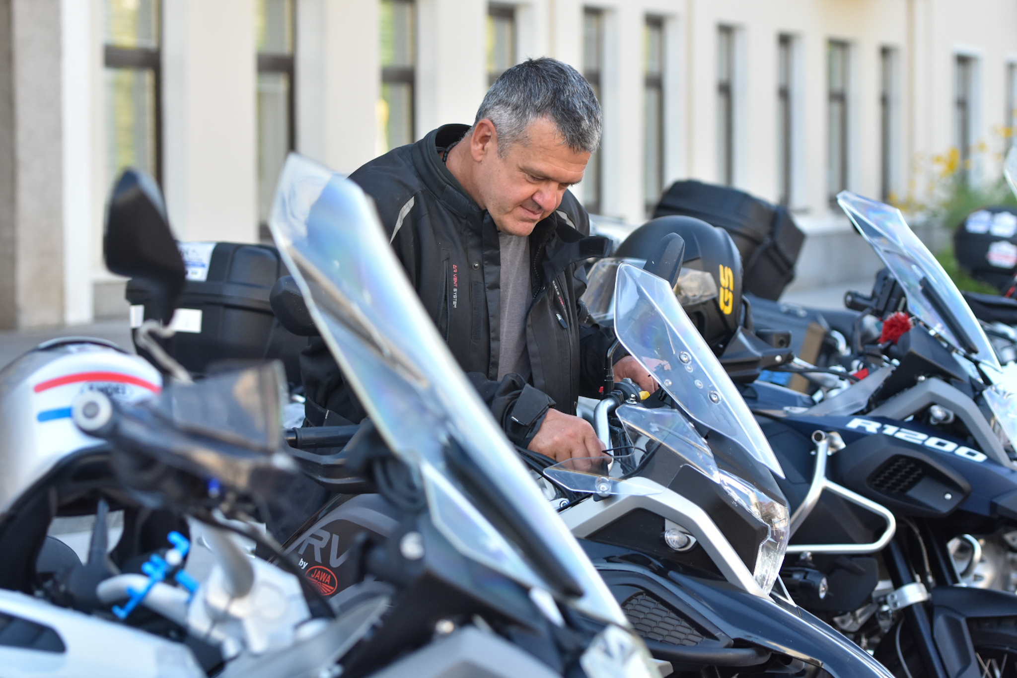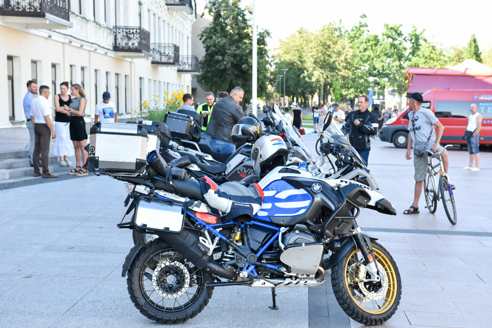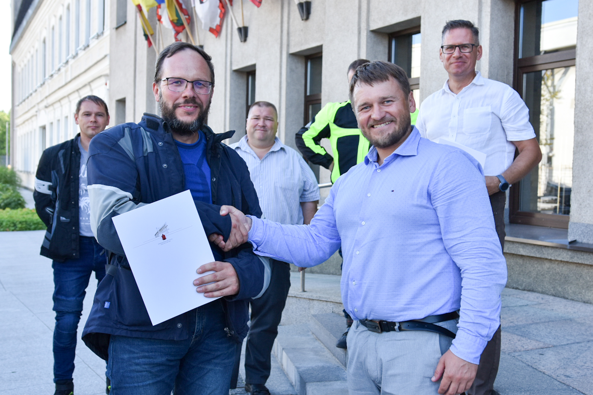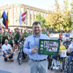 Šiandien prie Panevėžio miesto savivaldybės išlydėti taip pat „Mototurizmo ralis 2022 po Lietuvą”, skirto Baltijos keliui paminėti, žygio dalyviai.
