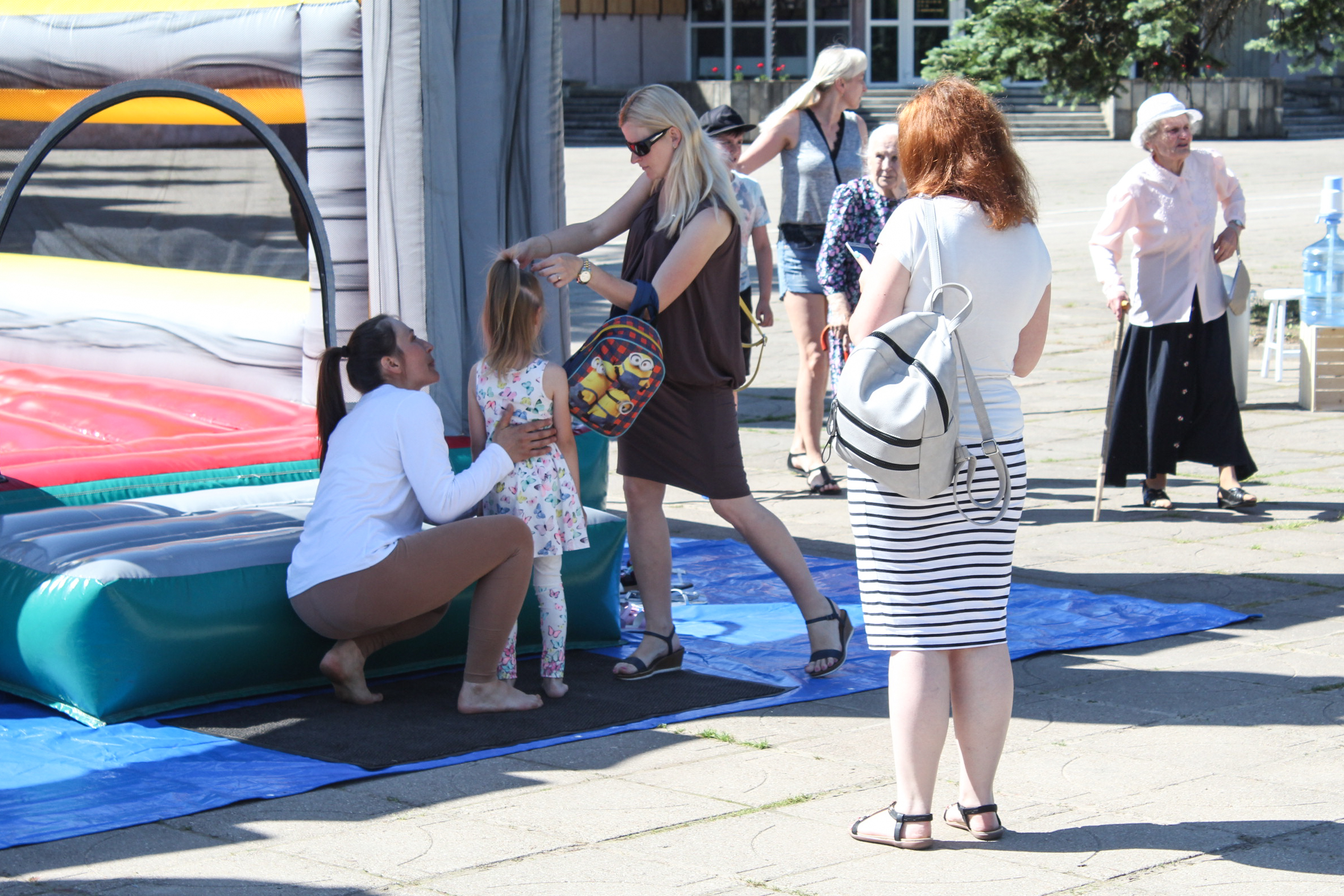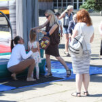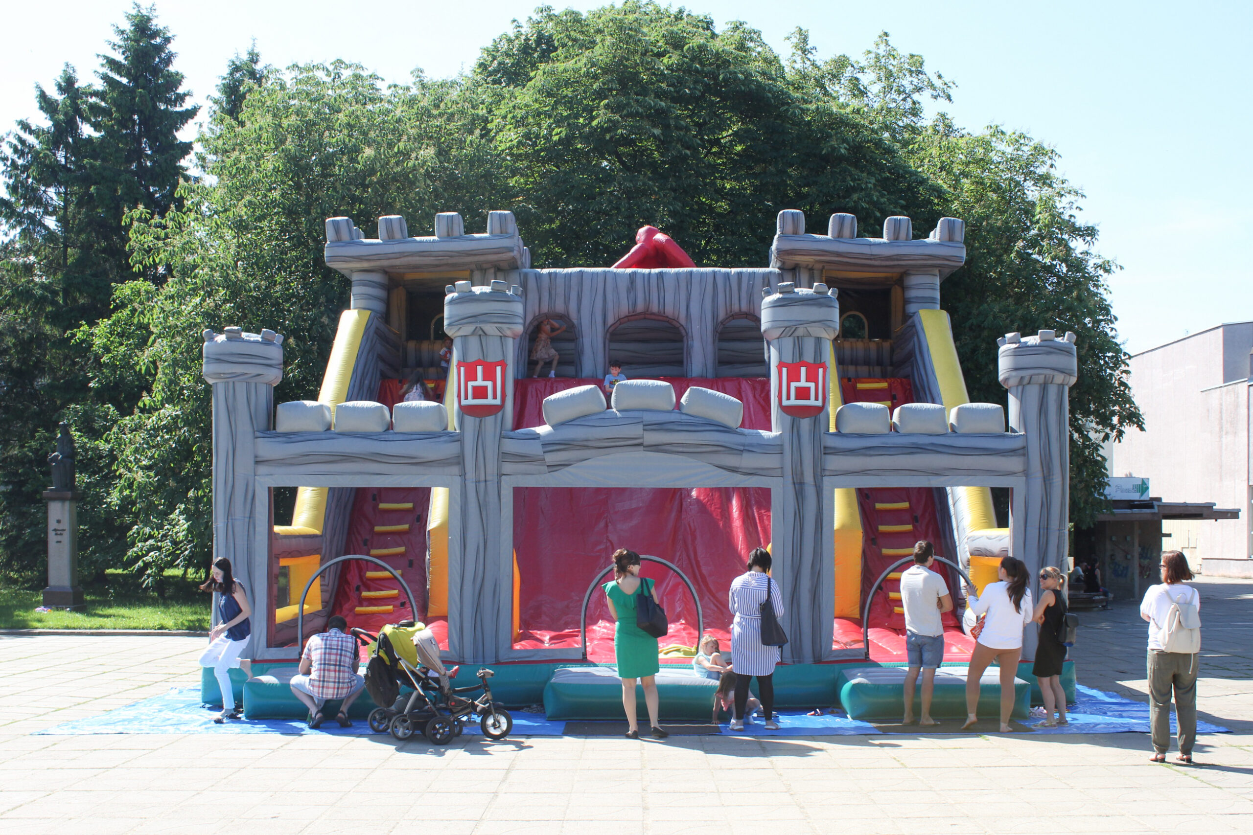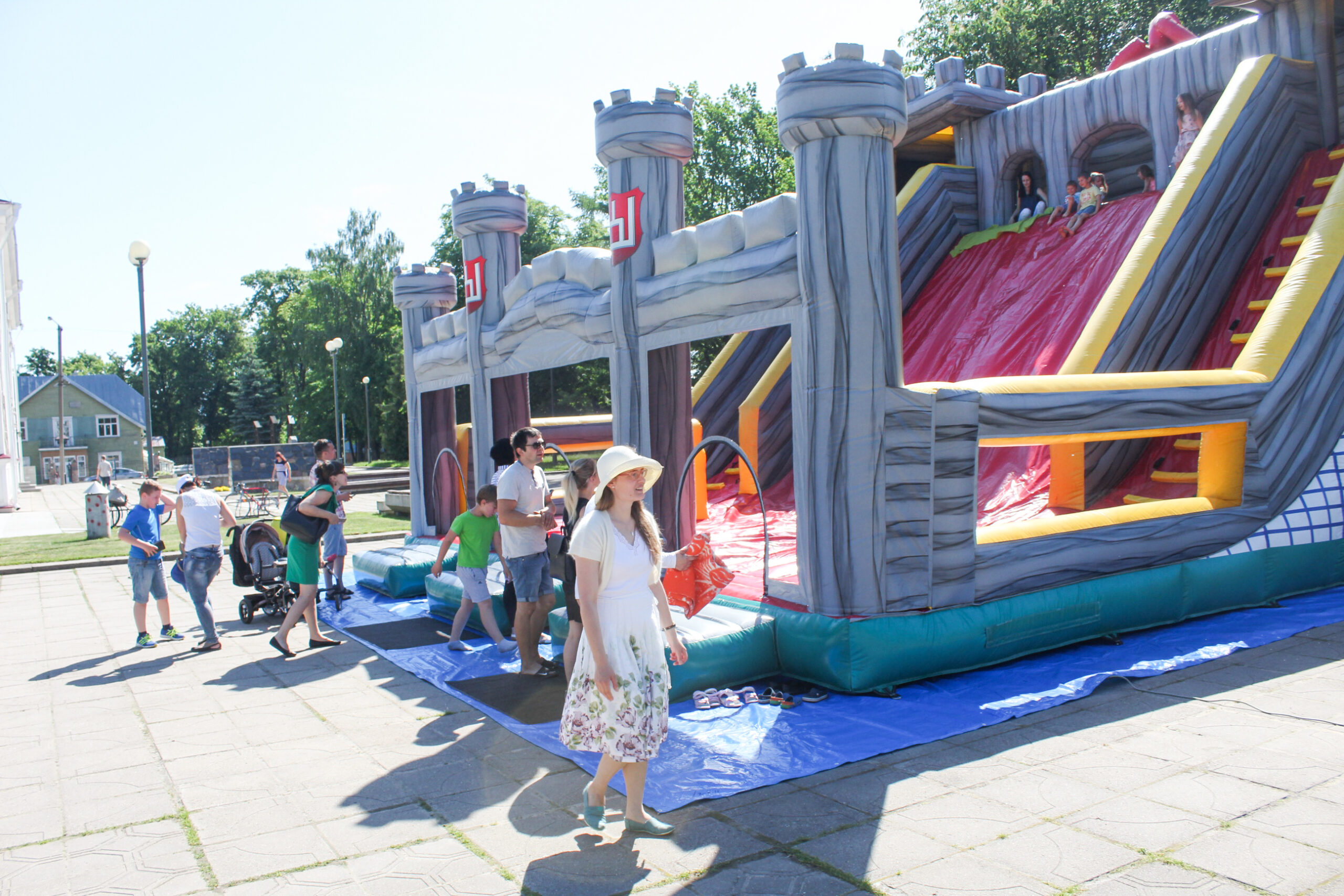 Panevėžio Švč. Trejybės bažnyčios kiemas šiandien, kaip niekad, triukšmingas. Po visą Nepriklausomybės aikštę vaikštinėja seneliai, linksmai kalbasi tėvai, o jų vaikai smaginasi ant pripūsto milžiniško batuto.
