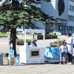 žmonių minia. visi buvo pavaišinti sriuba, labai gardžia.