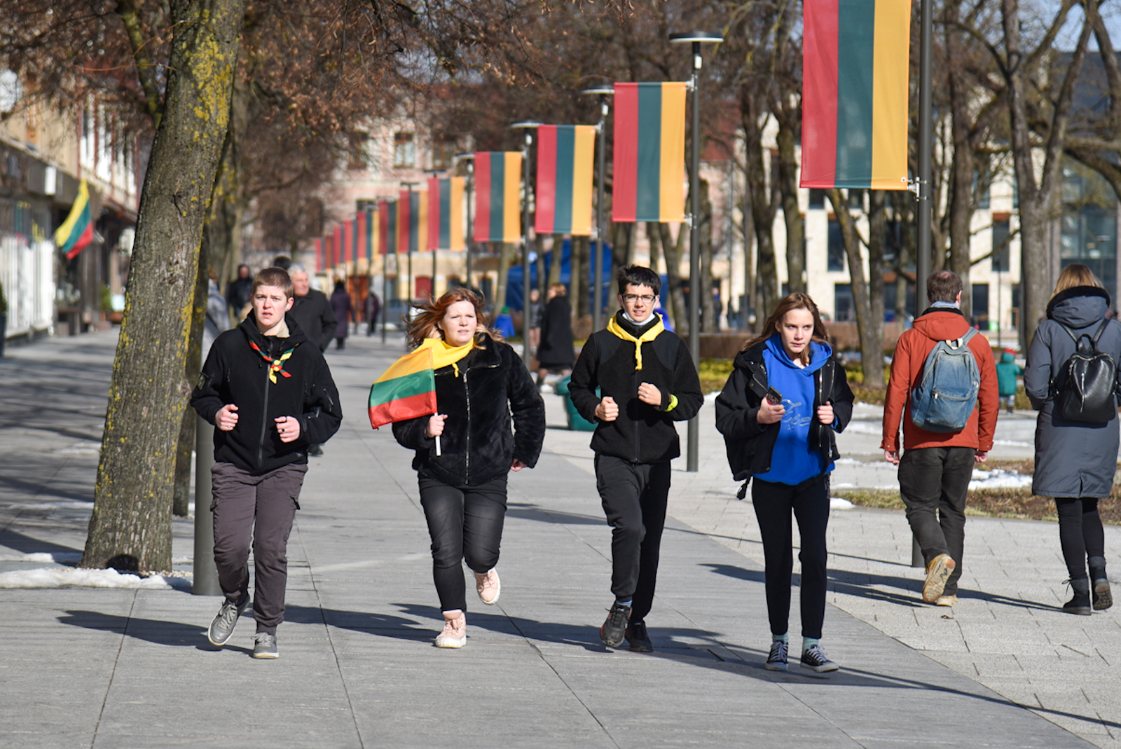 Kovo 11–osios proga apibėgti aplink aikštę jau tapo tradicija ir miesto įstaigoms. Prie starto linijos rikiavosi darželinukų grupės, mokyklų klasės, kolektyvai.