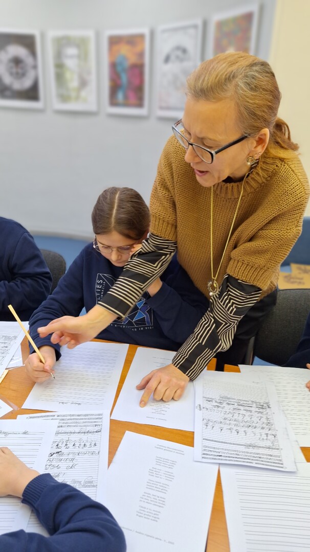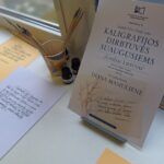 Atlikę kelis bandomąsias užduotis, dirbtuvių dalyviai mėgino kaligrafiškai perrašyti pateiktus lietuvių klasikų, Maironio, J. Strielkūno, A. Jonyno, Just. Marcinkevičiaus, kūrinių posmus, skirtus Lietuvai.