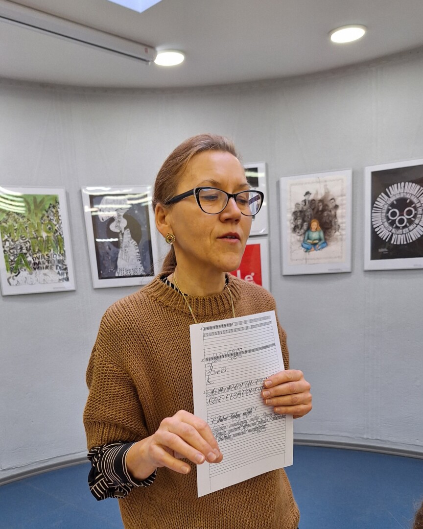 Dailininkė dirbtuvių dalyviams pasakojo, jog senovėje dailiai rašyti turėjo mokėti visi pasiturintys, būdavo samdomi namų mokytojai. „O dabar rašymas ranka vėl tampa vertybe. Pasiilgstama tikro žodžio, o jei dar dailiai užrašyto ranka, panaudojant gražius tekstus, žodžius… Tai tikras malonumas akiai ir širdžiai, teikiantis atpalaidavimą, ramybę“, – teigė ji.