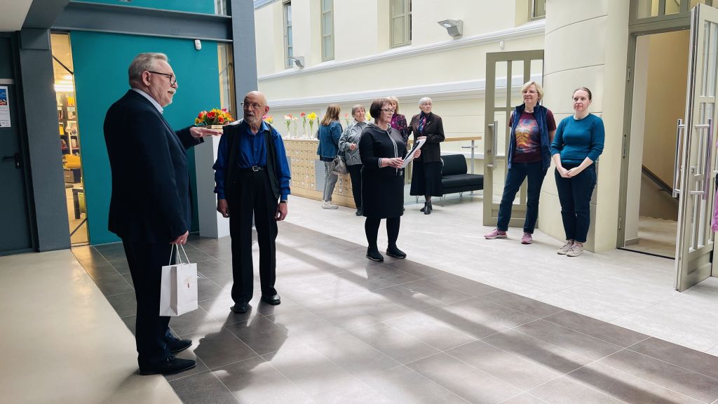 Į biblioteką ir Panevėžį žydėjimo grožį atvežantį atkaklųjį gėlininką sveikino Panevėžio vicemeras Valdemaras Jakštas, linkėjo jam sveikatos ir atvažiuoti kiekvieną pavasarį.