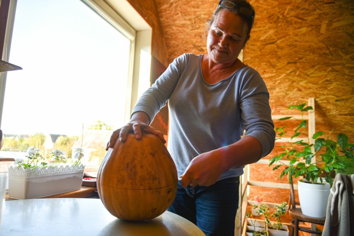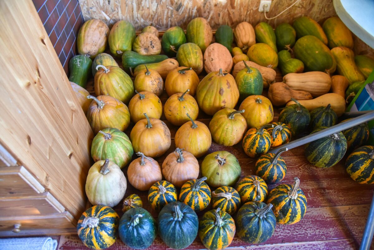 Pailgi, apvalūs, žali, geltoni ir balti – kelios eilės skirtingų moliūgų neseniai iš daržo persikraustė į Galinos namų mansardą. Čia tvarkingai ir sausai sudėtos daržovės stovės iki kito rudens.
