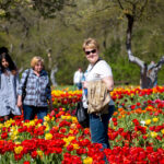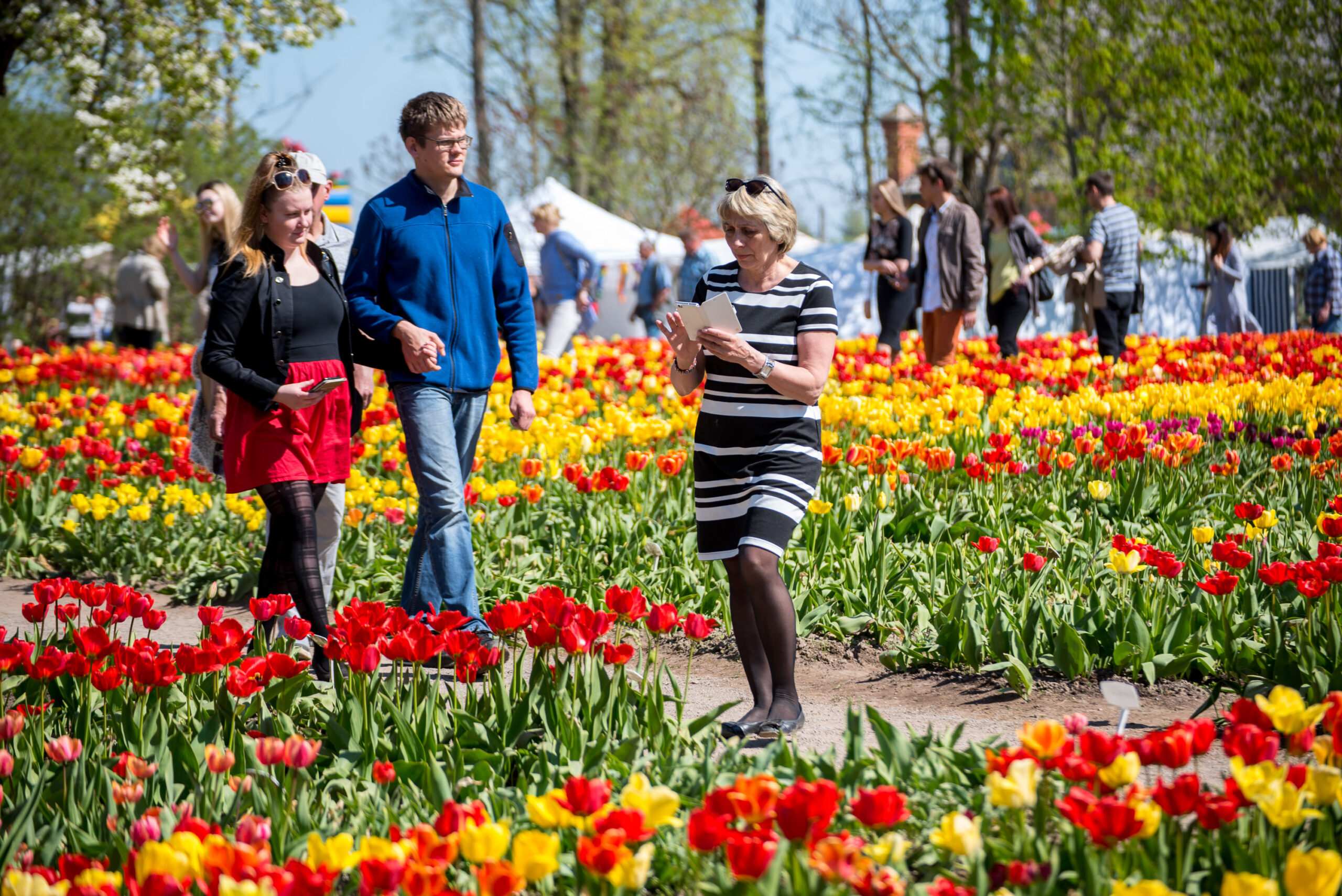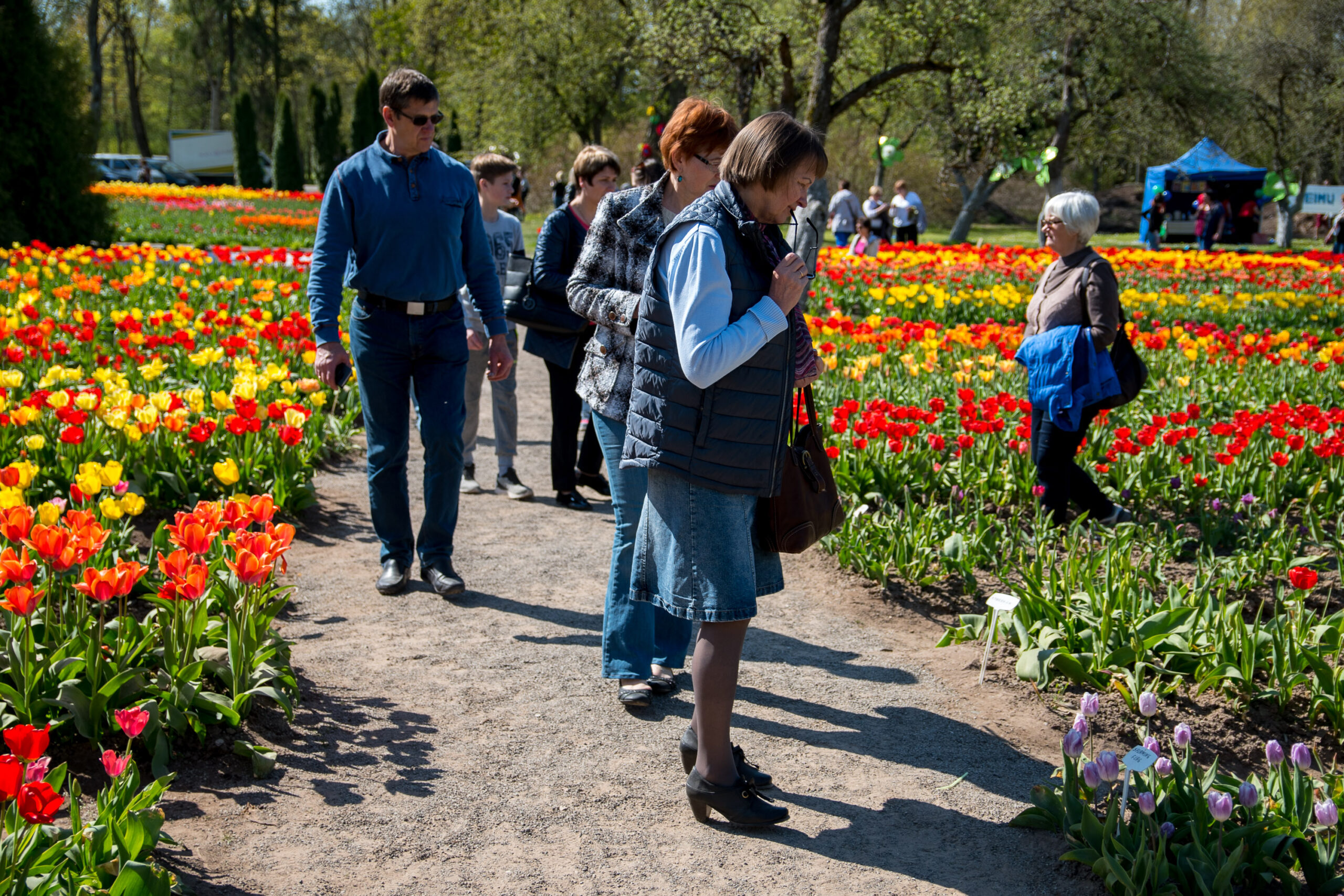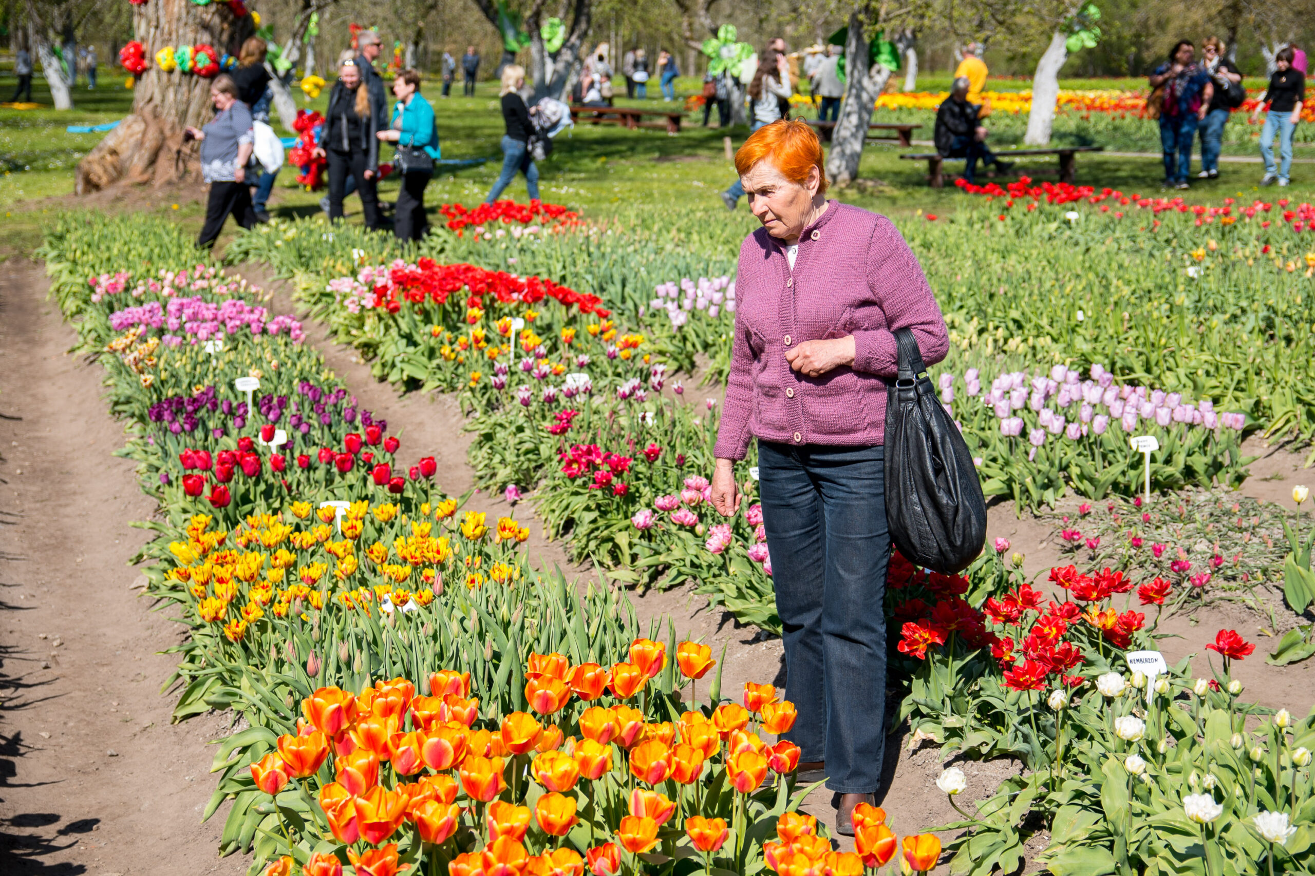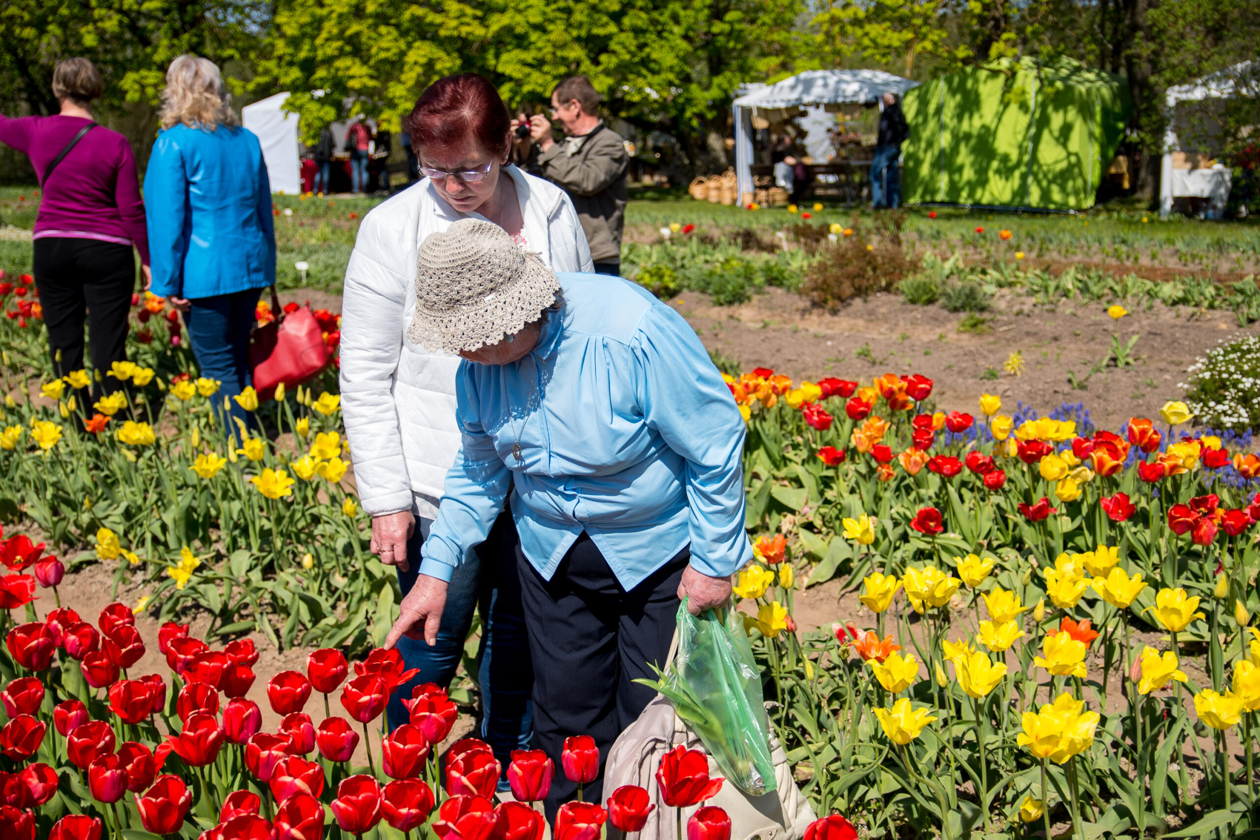 Tauragiškė Regina tulpes apžiūrinėjo kartu su vilniete marčia Agne. Jos taip pat šventėje lankėsi pirmą kartą.