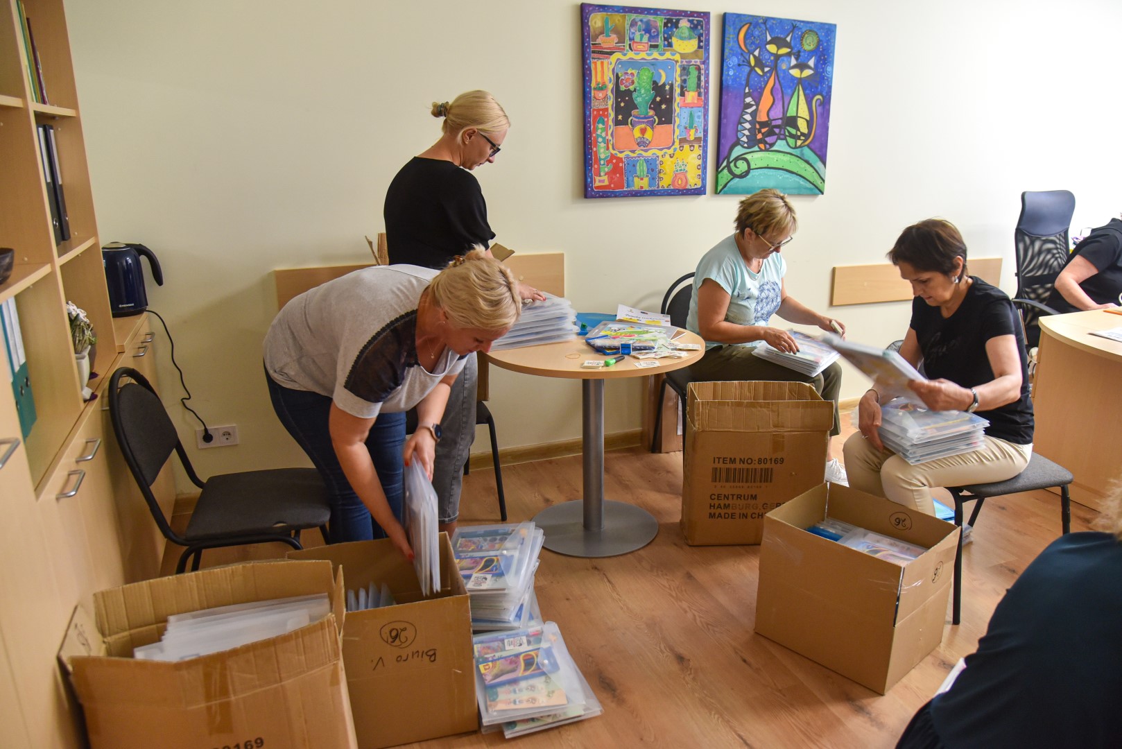 Antradienio rytą Panevėžio miesto savivaldybės Švietimo skyriuje virė darbas – darbuotojams teko užduotis supakuoti beveik 900 pirmokėlių krepšelių – rugsėjo 1-ąją į mokyklas sugužės 836 pirmokai.