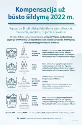Nuo metų pradžios padvigubinus valstybės remiamų pajamų (VRP) dydį, taikomą būsto šildymo išlaidų kompensacijai apskaičiuoti, būsto šildymo kompensacijų gavėjų padaugėjo beveik 40 proc. Sunkiau besiverčiantys šalies gyventojai kompensaciją gali gauti nepriklausomai nuo to, kokiu būdu šildosi būstą: centralizuotai, malkomis, dujomis, elektra ar kt.