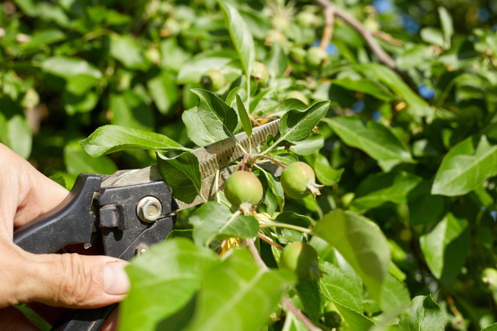 Pašalinus neperspektyvius vaisius, medis nukreips visas galias į likusiųjų nokinimą.