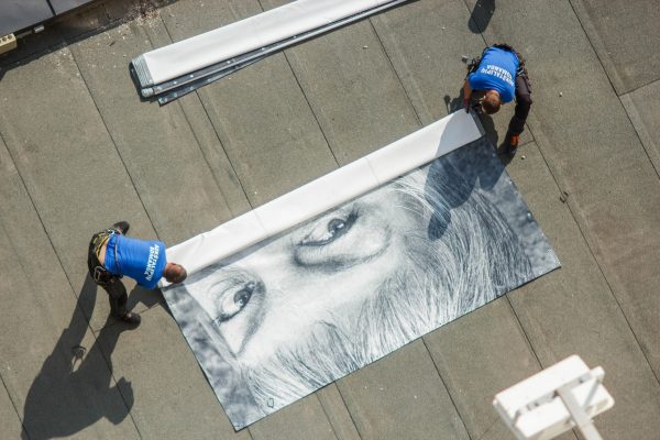 Vadinamajame Panevėžio centro dangoraižyje pastarosiomis dienomis triūsia aukštalipiai, keičiantys nuo praėjusių metų gruodžio kabėjusią fotografijų ekspoziciją nauja.