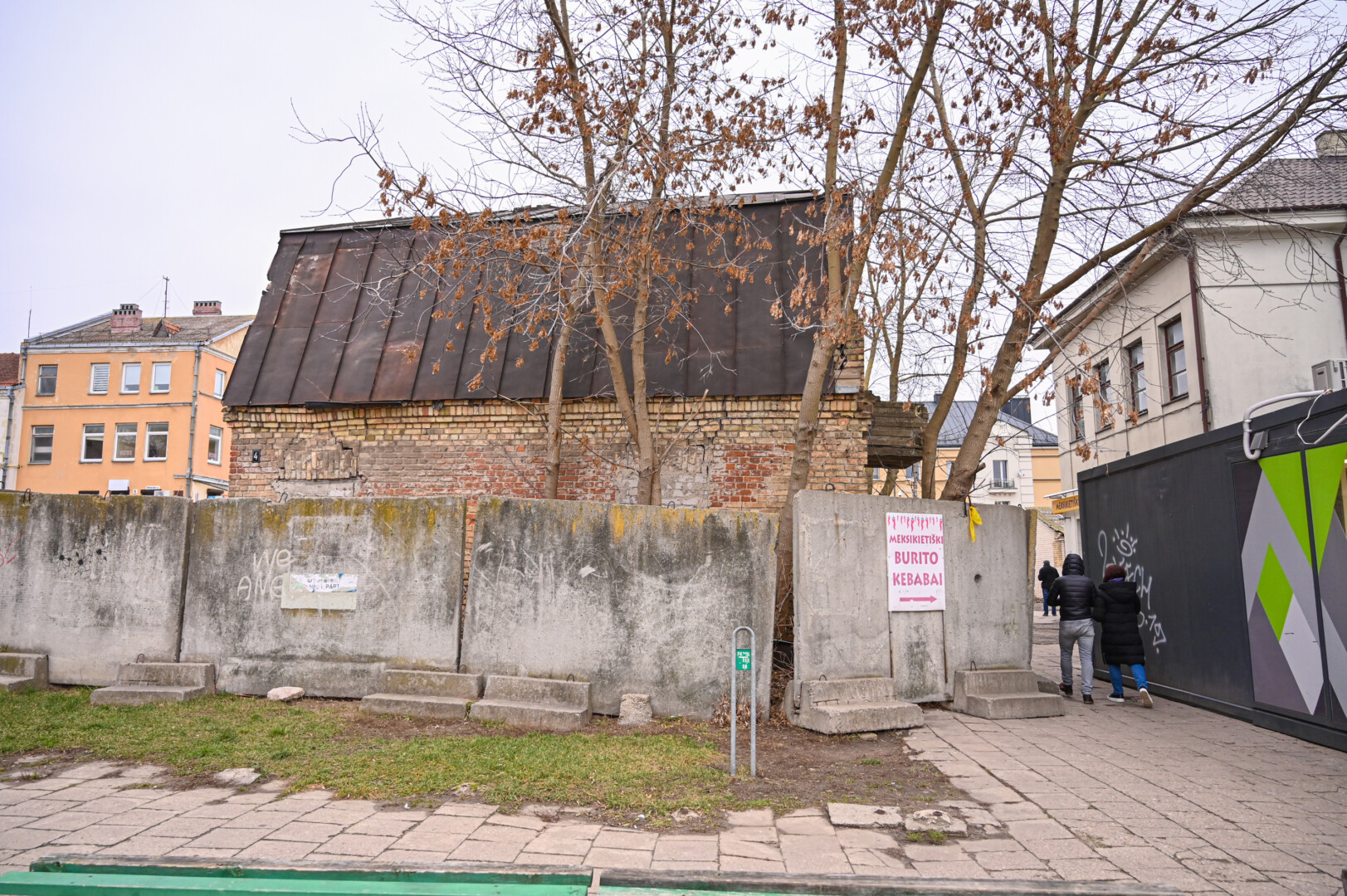 Už apleistą dviejų aukštų 52,14 kv. m pastatą kartu su 3,1 aro žemės sklypu Savanorių aikštės centre prašoma 165 tūkst. eurų.