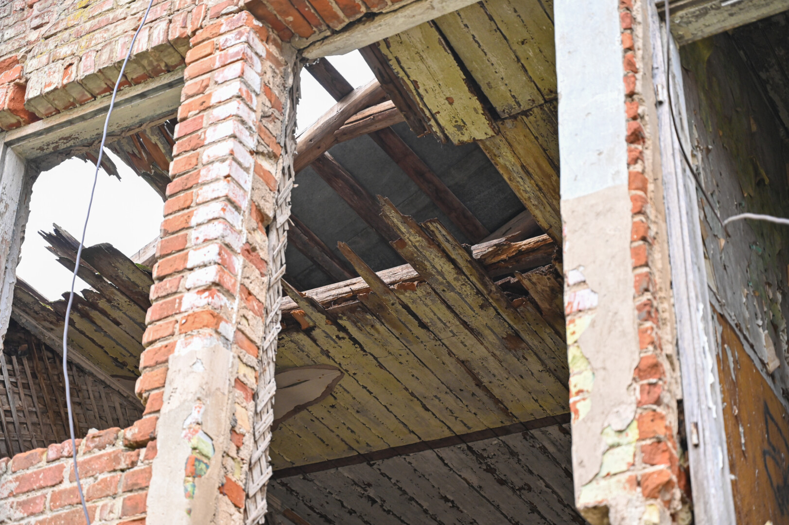 Daugybę metų šiame pastate glausdavosi benamiai, dabar jį juosia grafičiais apipiešta betoninių blokų tvora, langai užmūryti.