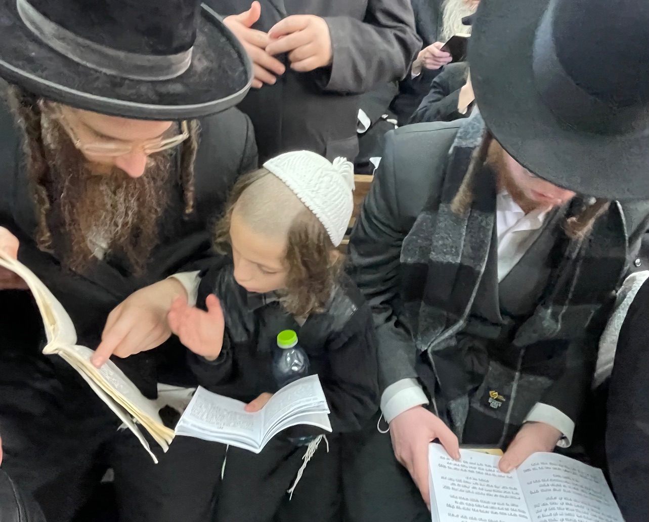 Visas šventines dienas prie chasidų sinagogos susirinkdavo minios maldininkų, skaitančių religinius tekstus. Kai kurie chasidai galvas glaudė prie sinagogos sienos ir lingavo kartodami maldos žodžius.