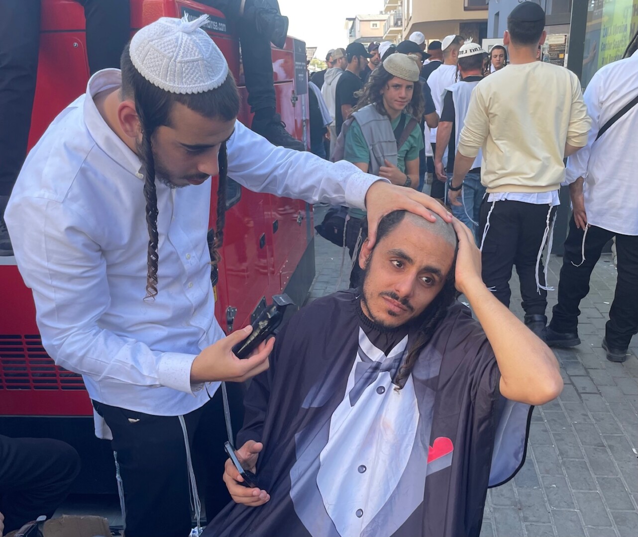 Jausmas, kad atsidūrei viename iš Izraelio miestų, dar labiau apėmė, kai vidurdienį per garsiakalbius ėmė sklisti maldos žodžiai ir keliasdešimt tūkstančių chasidų gatvėse bei namų balkonuose juos kartojo.