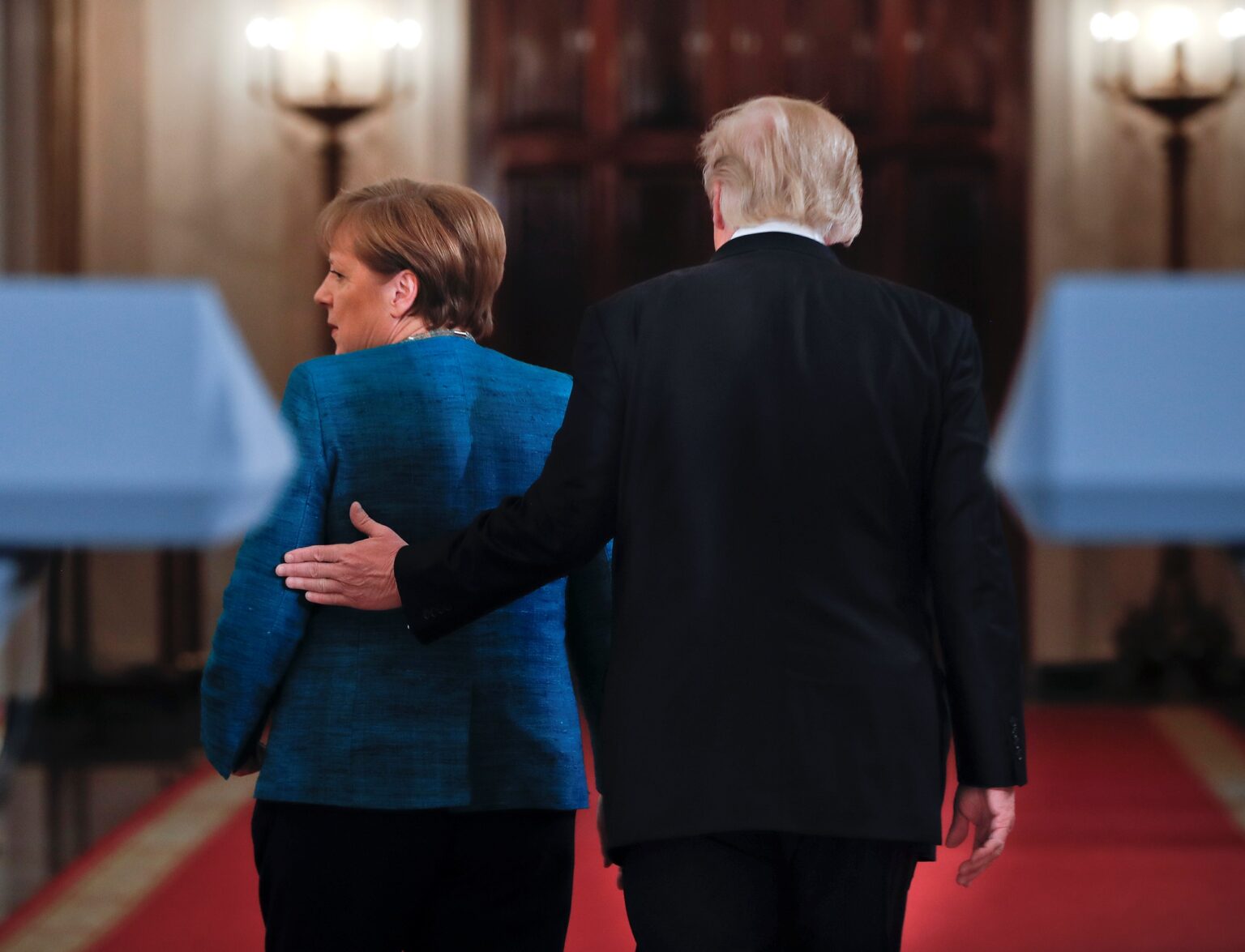 Vokietijos ir JAV vadovai per pirmąjį savo susitikimą mėgino surasti sąlyčio taškų, tačiau jiems sunkiai sekėsi užmegzti draugišką kontaktą. Bendros spaudos konferencijos pradžioje A.Merkel, kuri palaikė draugiškus santykius su B.Obama per aštuonerius pastarojo prezidentavimo metus, pabandė pralaužti ledus ir pasakė, kad „daug geriau kalbėtis vienam su kitu, nei kalbėti apie vienas kitą“.