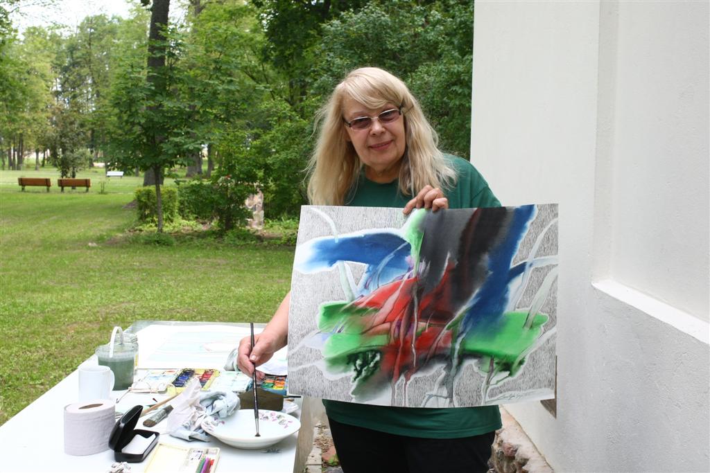 Vienos dvare su dailininkais praleido vos dieną kitą, kitos čia lankydavosi kasdien. Viena tokių – panevėžietė Regina Kriščiūnienė. Ji neslepia, kad rankose rimčiau teptuką laiko pirmą kartą.
