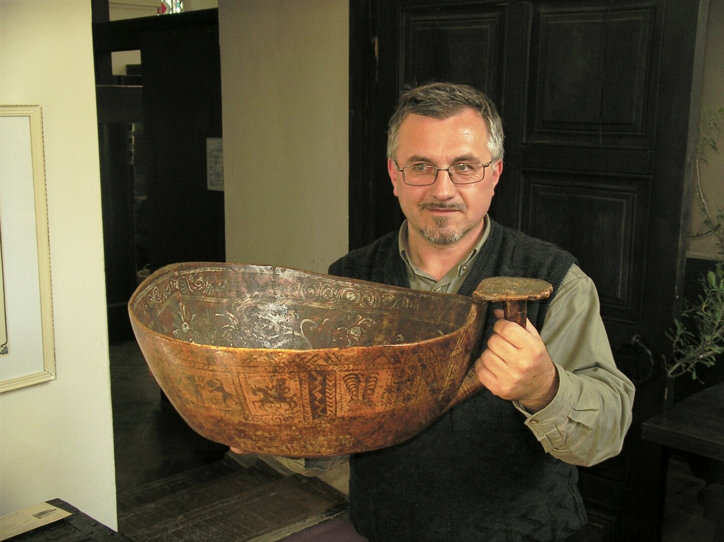 Unikalus daiktas rastas po Antrojo pasaulinio karo Gardino bažnyčios rūsyje. Tokie mediniai kaušai baltų kraštuose būdavo svarbūs senųjų apeigų reikmenys.