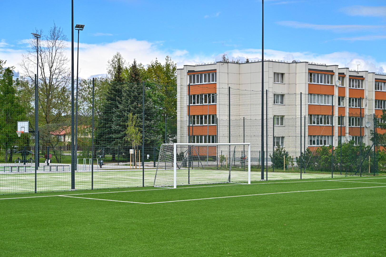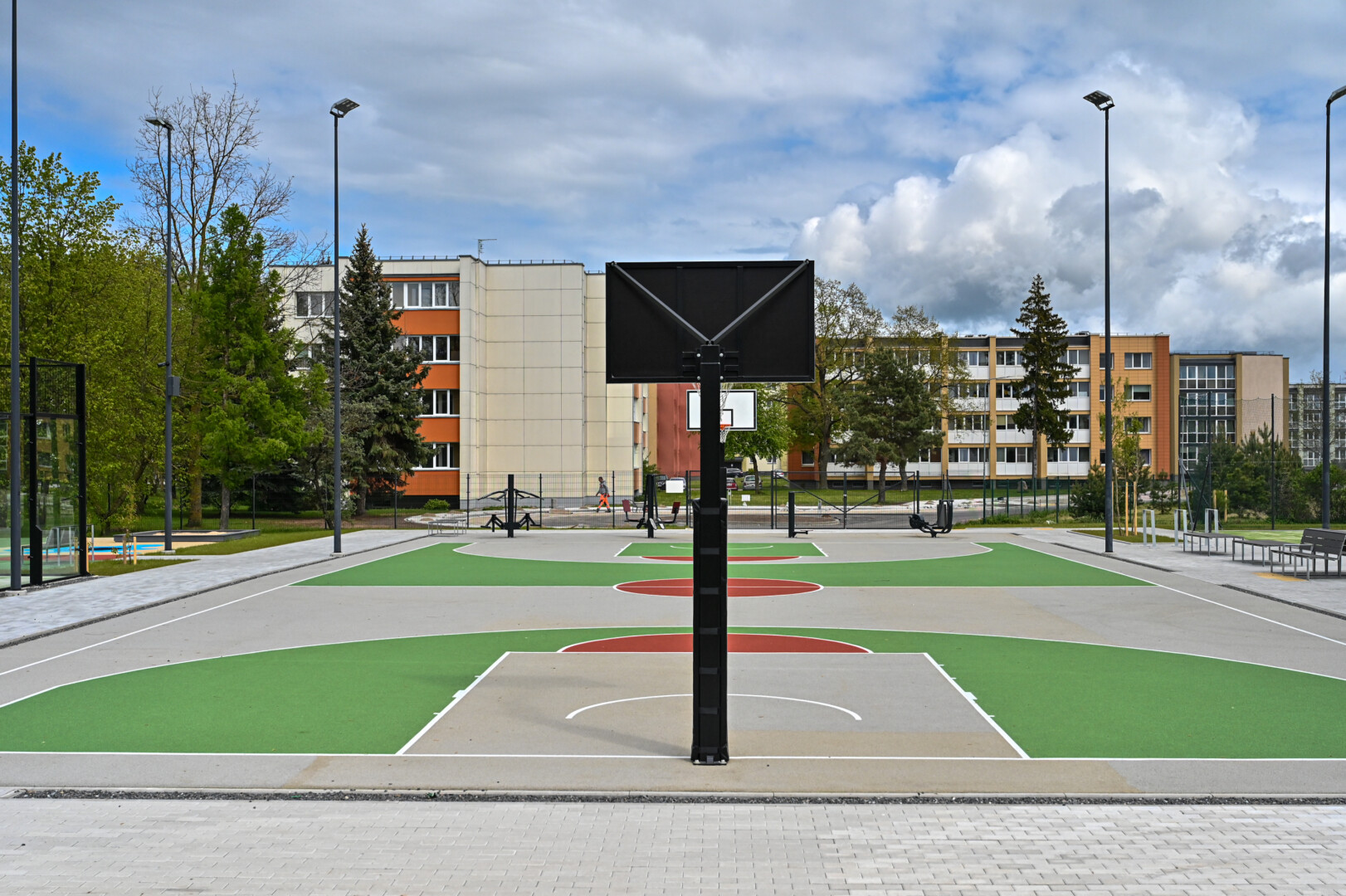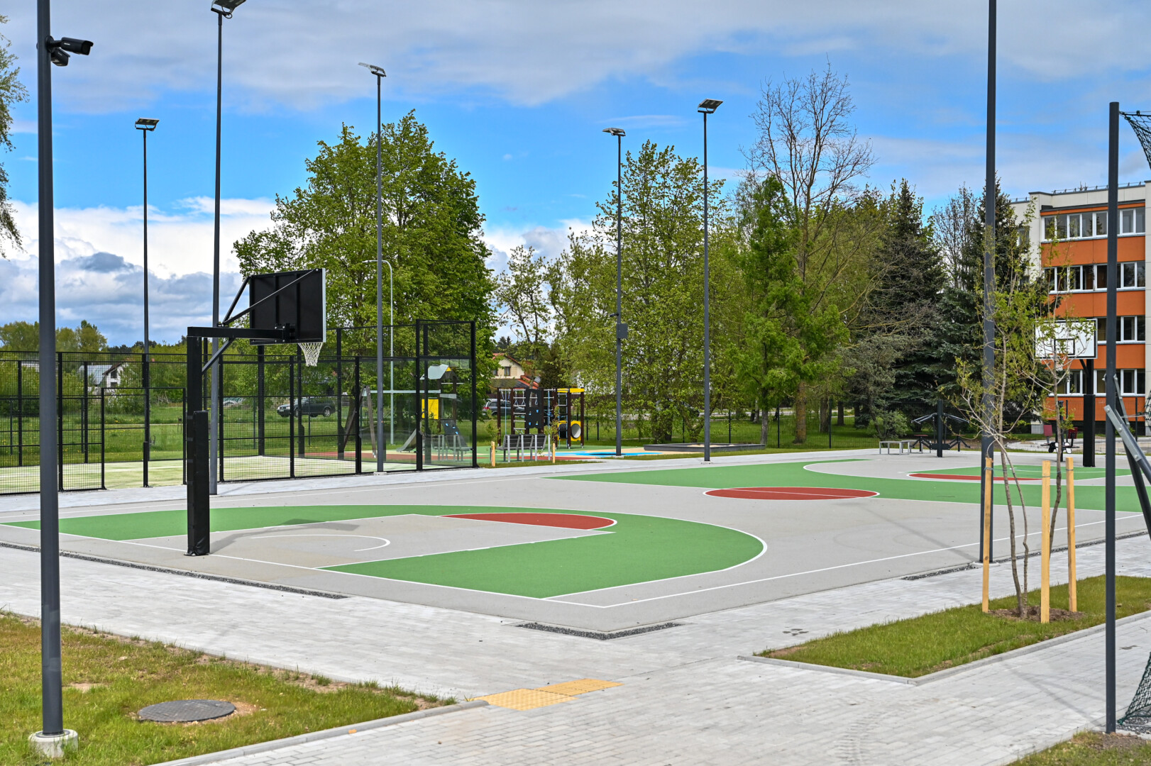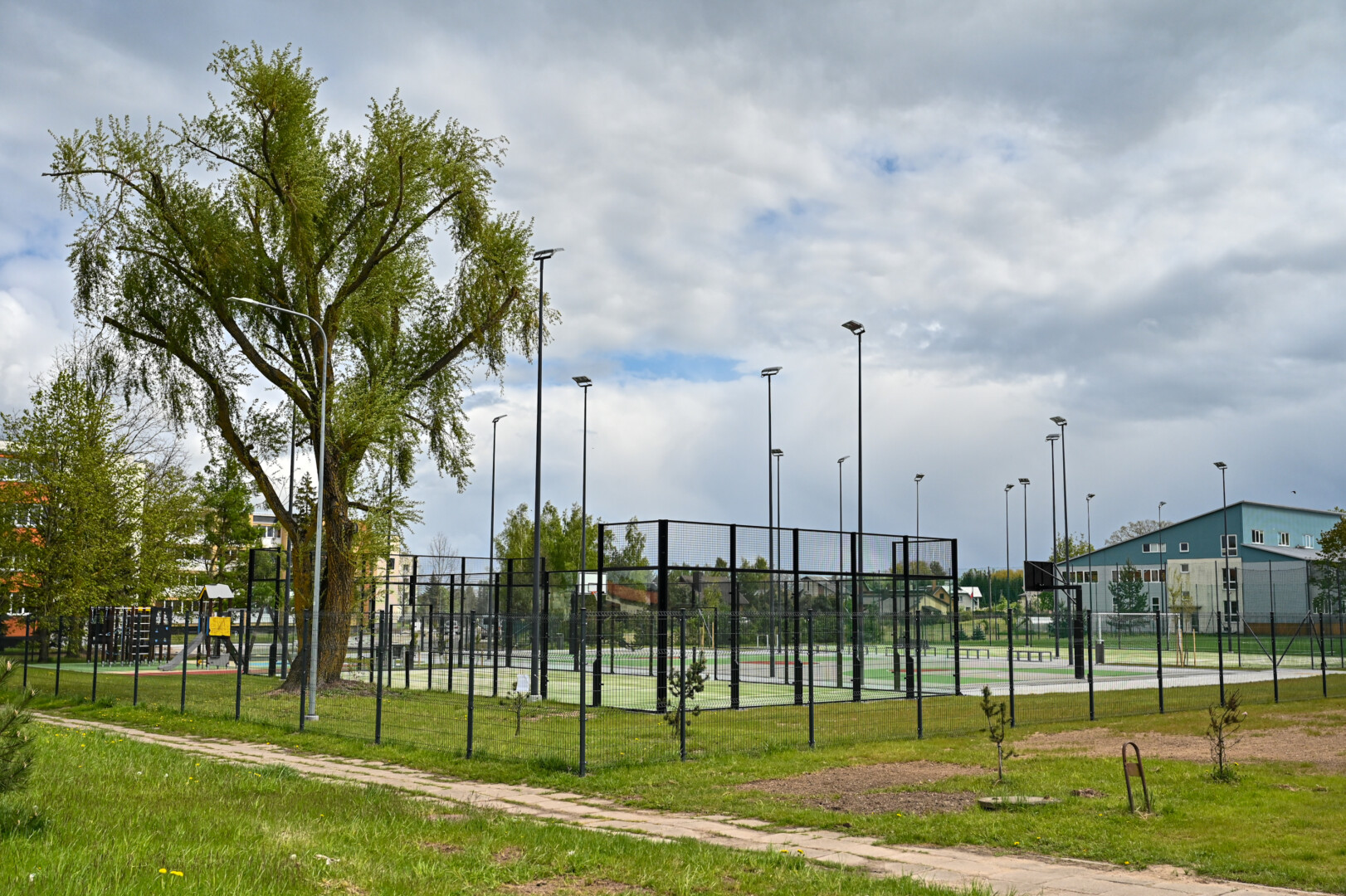 Sporto entuziastai naujajame aikštyne ras futbolo, lauko teniso, krepšinio, padelio aikšteles, lauko treniruoklius.