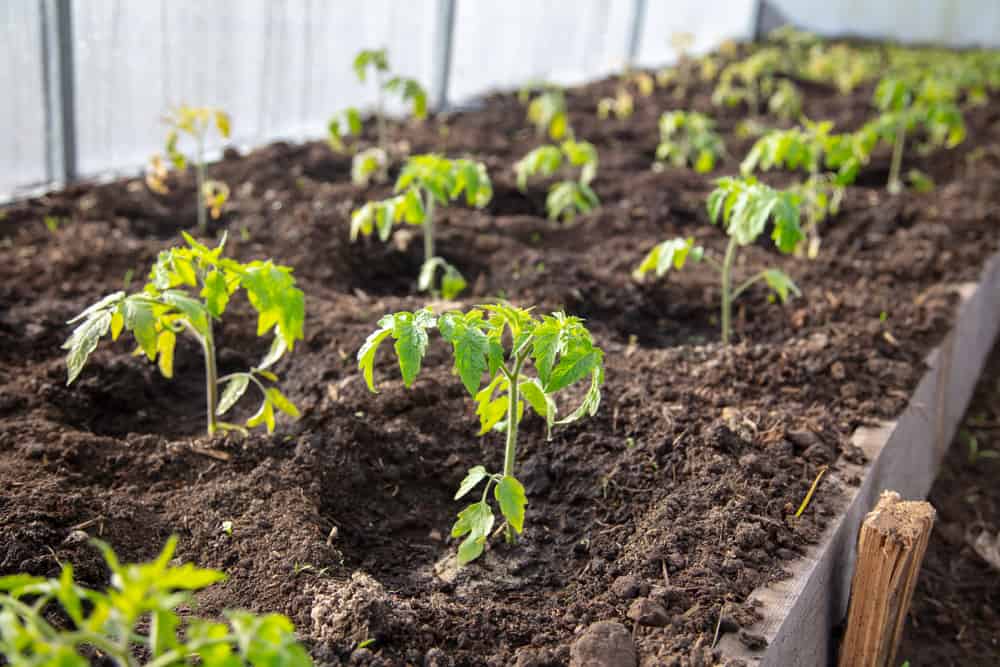 Vidutinio aukščio pomidorai sodinami 55 cm atstumu tarp eilių paliekant 70–80 cm.