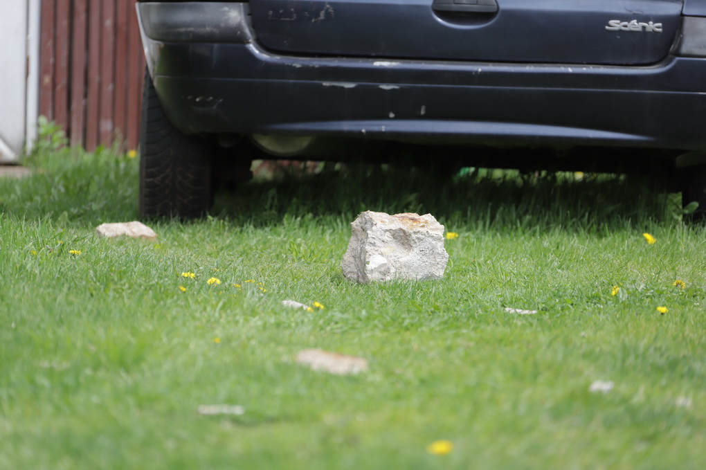 „Nedideli, mobiliojo telefono dydžio gabaliukai praktiškai kasdien krisdavo į kiemą. Jeigu einu į daržą, visuomet dėviu ir šalmą. Nors man 74-eri, bet noriu mirti savo mirtimi“, – guodžiasi E. Abloževičienė.