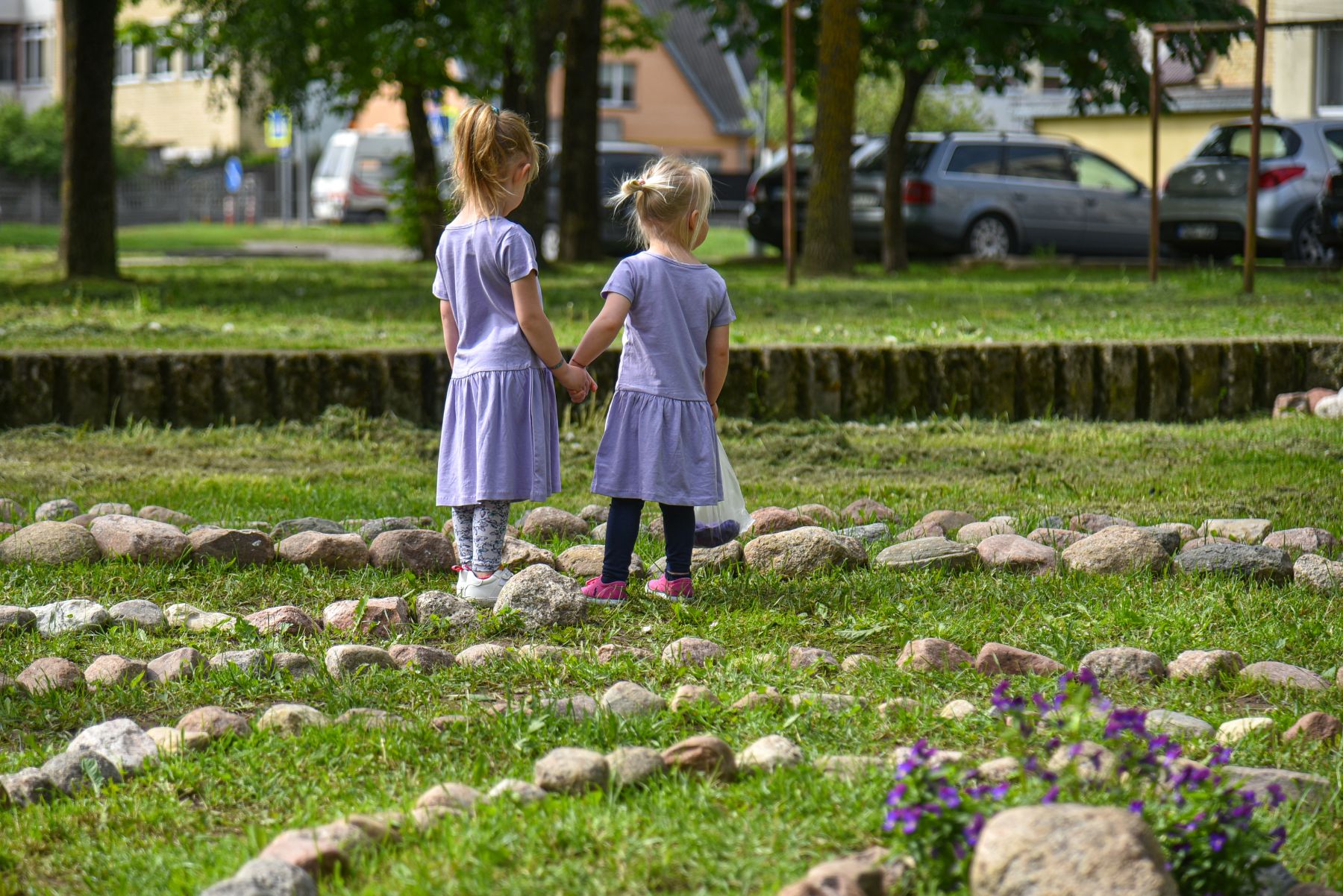 Dėlioti akmenis jai padėjo sutuoktinis, bet didžiausi pagalbininkai – kiemo vaikai. Jie su centimetru matavo atstumus nuo vieno riedulio iki kito. Taip jau išėjo, kad tarp akmenukų yra apie 66 centimetrai, tad vaikai šiam energetiniam labirintui jau ir vardą davė – „66“.