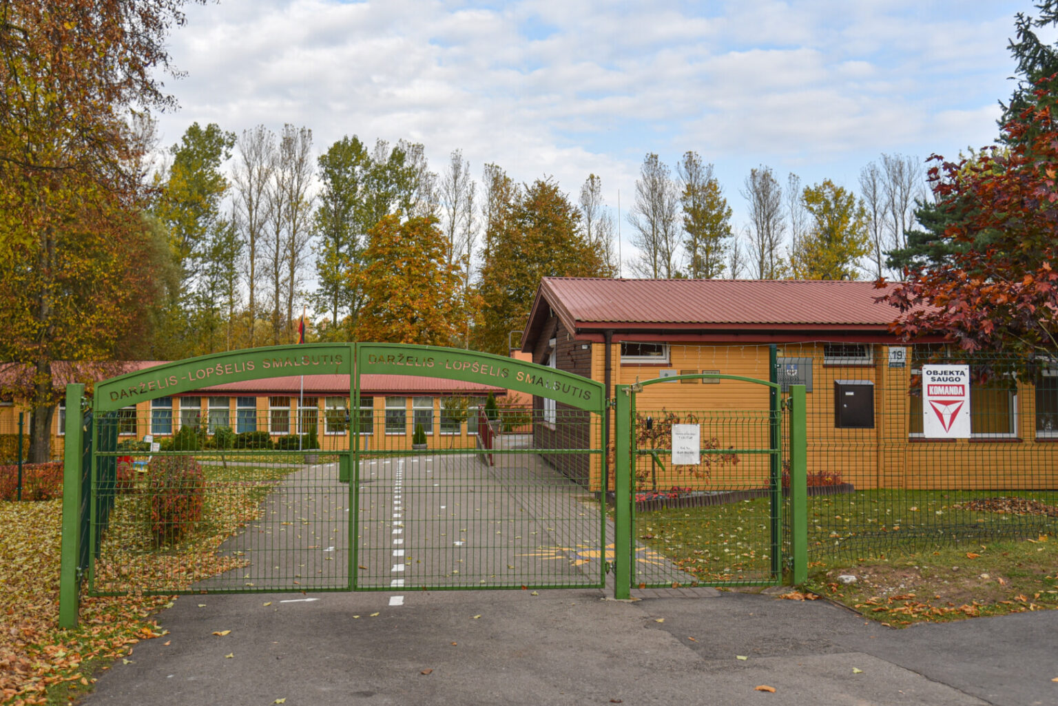 Darželinukų grupė atskirta nuo mokyklos, mažieji turi atskirtą išėjimą į kiemą, maistas jiems atnešamas į grupę.